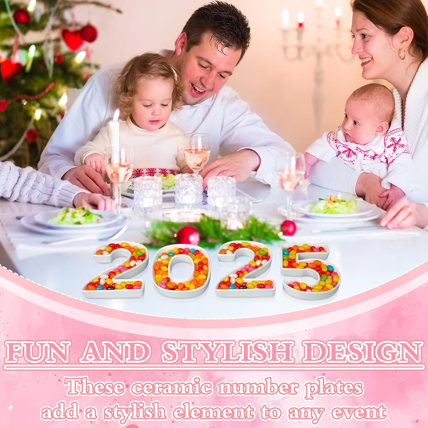 Features: Unlike some other materials, the ceramic surface will not absorb food odors, keeping your dishes fresh and ready for reuse time and time again, making it easy to clean and maintain. These number dishes are ideal for adding a touch of personalization and fun to your celebrations and special events. From birthdays and anniversaries to wedding parties and graduation ceremonies, the numeric design of this set will make your gatherings even more memorable and meaningful. Specifications: Material: ceramics Color: white Size: 4.33 x 5.91 x 0.79 inches/ 11 x 15 x 2 cm Package includes: 10 x Ceramic Number Dishs Notes: Manual measurement, please allow slight errors on size. The color may exist a slight difference due to different screen displays.