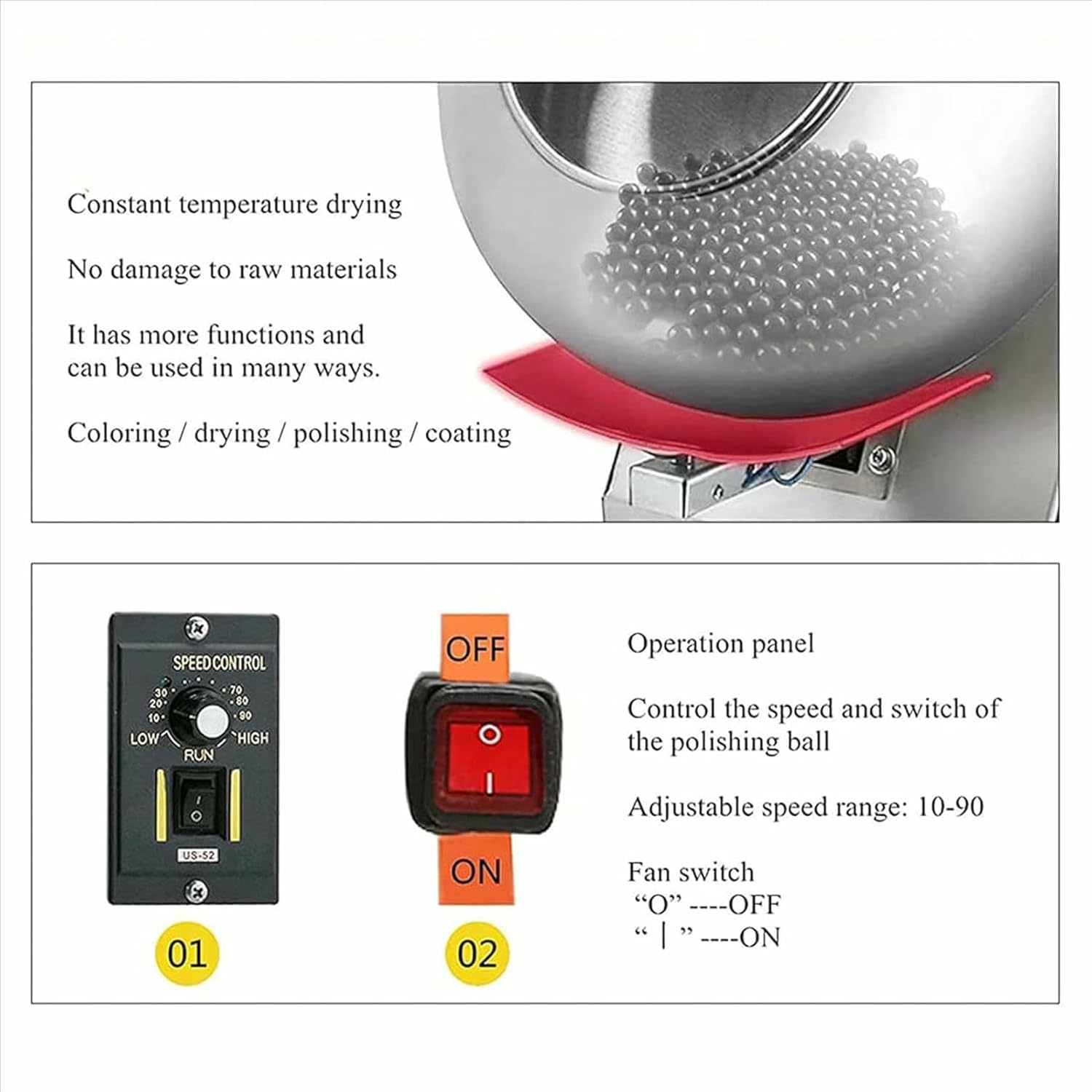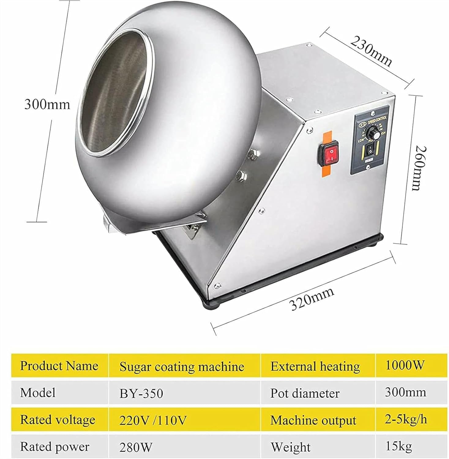 Dear friends, welcome to our storeWe hope you find something you like in our store.Production capacity: 2-5 (kg/h)Spindle speed: 520 (r/min)Motor power: 0.28 (KW)Dimensions: 260*230*320 (mm)Weight: 15 (kg)Principle: Turbine pulverizerSpecifications: 300mm diameter adjustable speed coating machine,Package includes:1 × machine d'enrobage de chocolatPoints to note.1. Due to manual measurement, there may be an error of 1-3 cm. Please refer to the actual product.2.As the shooting light and brightness are different, there may be color difference. See actual product.