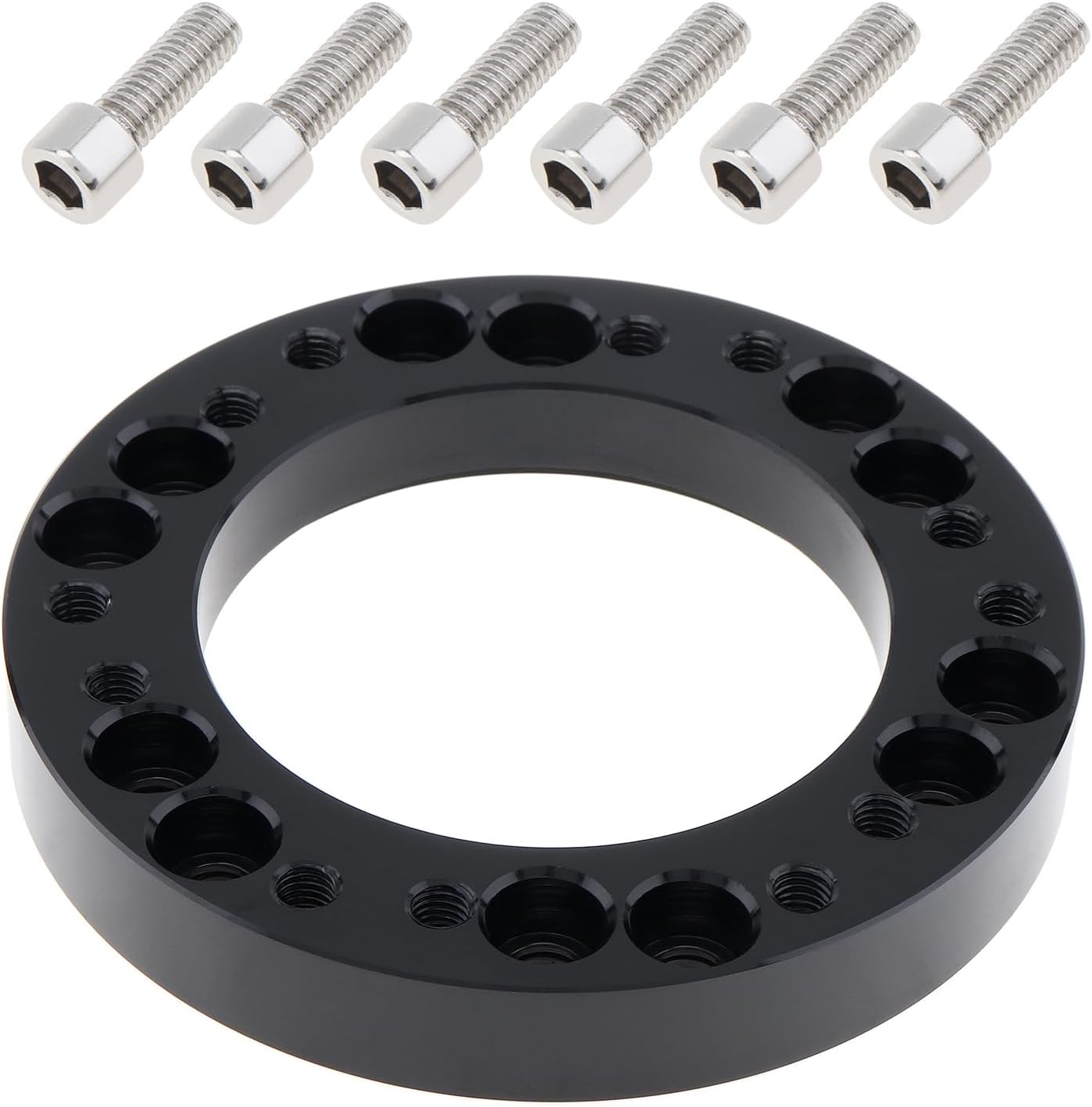 Features: - This is NOT a steering wheel adapter. ( You will need one to fit onto the actual column). - The adapter conversion spacer is made from aluminium billet with 5mm threaded screw holes. - It is made of aluminum alloy material, firm, anti rust, and durable in use. - It comes with 6 new stainless steel fitting bolts and allen key to attach the adapter to your hub kit. - It allows you to fit steering wheels with a 6 x 70mm PCD to hub kits with a 6 x 74mm PCD. Specifications: Product Name: 12mm Steering Wheel Hub PCD Adapter Spacer Material: Aluminium Alloy Color: Black Place of Application: - Fit for MOMO 6 x 70mm PCD - Fit for OMP 6 x 70mm PCD - Fit for SPARCO 6 x 70mm PCD - Fit for ITALVOLANTI 6 x 70mm PCD - Fit for NARDI/PERSONAL 6 x 74mm PCD Package Includes: 1 x Steering Wheel Spacer 1 x L-type Wrench 6 x Screws