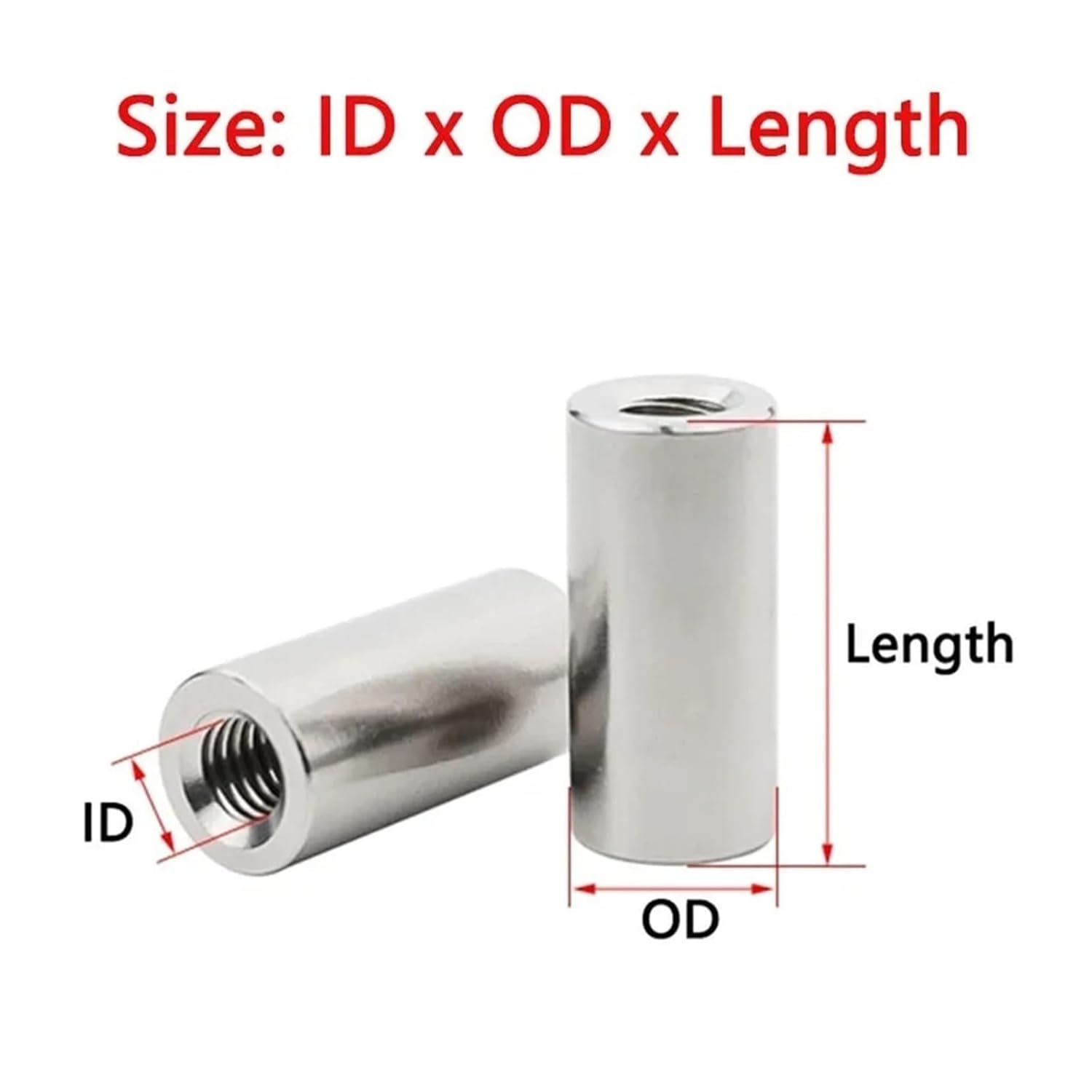 Name: Circular Spacer Stud Spacer Nut Internal ThreadMaterial: 304 stainless steelSurface treatment: untreatedThread type: coarse threadThread diameter (d): M2 M2.5 M3 M4 M5 M6 M8 M10 M12 M14 M16 M20PitchM2 spacing 0.4mmM2.5 pitch 0.45mmM3 spacing 0.5mmM4 pitch 0.7mmM5 spacing 0.8mmM6 spacing 1.0mmM8 spacing 1.25mmM10 spacing 1.5mmM12 spacing 1.75mmM14 spacing 2mmM16 spacing 2mmOuter diameter: 6-20mmLength (L): 5-50mmFor example: M3x6x5 (thread diameter=3mm; outer diameter=6mm; length=5mm)