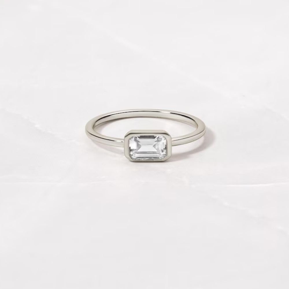 1 Ct Emerald Cut East West Diamond Full Bezel Dainty Solitaire Minimalist Engagement Rings For Women 14K Yellow Gold Plated 925 Sterling Silver Handmade Anniversary Ring Gift For Her. Material: Sterling Silver, which keeps glossy for a lifetime and is not harmful to people. Sterling Silver's strength makes it an excellent choice of material for jewelry. It is resistant to scratching and it will retain its beauty for years. Excellent Quality, Good Price, Comfort Fit Safe, and Comfortable to Wear in Daily Life. Gift idea: A wonderful gift for yourself, your lovers, your friends, your family, or other people dear to you on many occasions: birthdays, Christmas, dating, graduation, wedding, Mother's Day, engagement, Valentine's Day, and any special dates to you. Please carefully check the ring size you need before purchasing. We strive our best for your satisfaction. All your responses are valued highly and will be used to further improve the quality of our service and products. Please feel free to contact us if you have any questions!