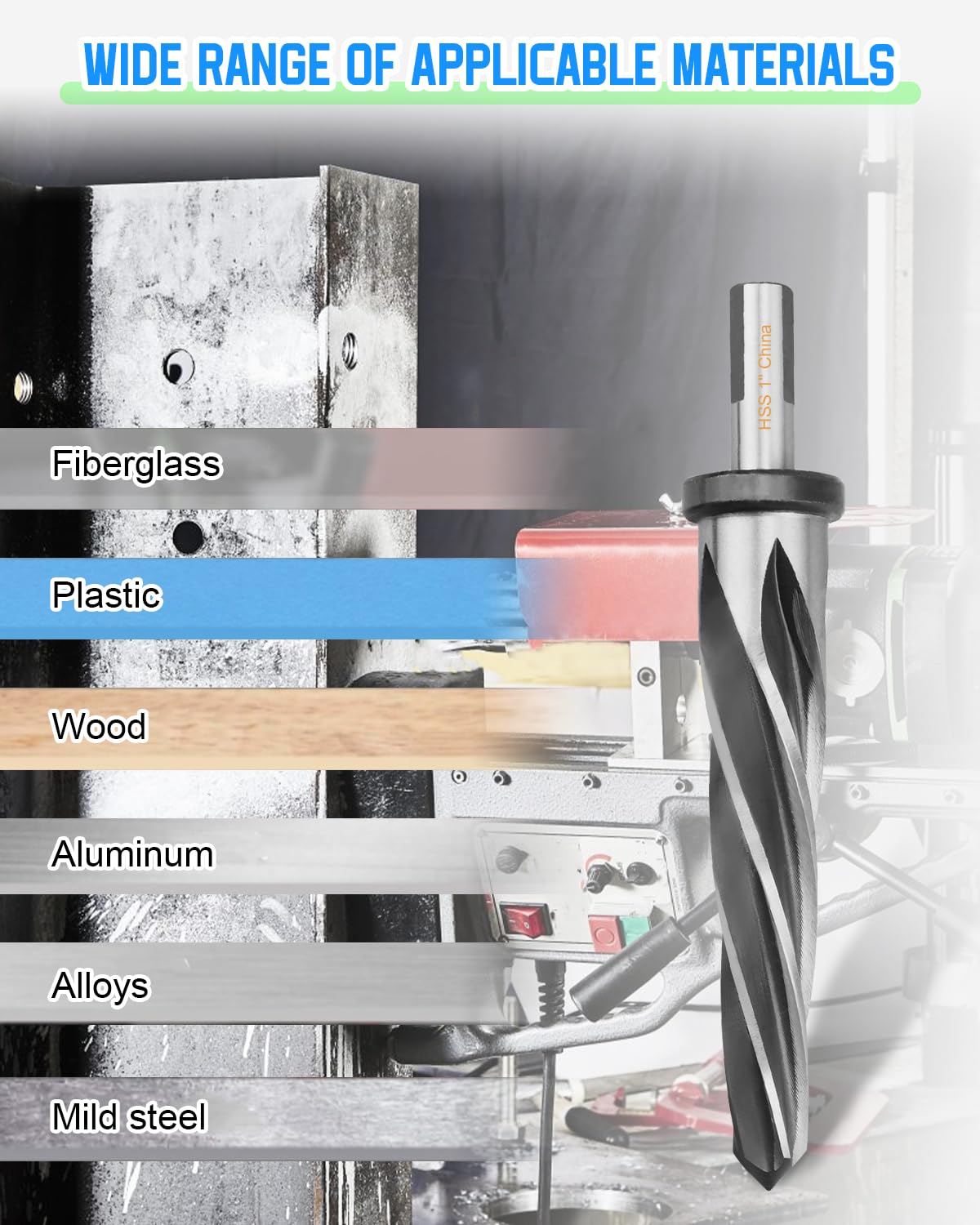 Applies to: The reamer bit fits for Steel Metal Wood Alloy to Align Existing Hole and Enlarge Hole Function: - Align existing holes and enlarge undersized holes before bolt or rivet installation -Commonly used in bridge,construction,steel erection and automotive truck trailer industries,specially use in structural materials such as steel, metal, alloy aluminum,brass,plastic,iron,nickel,copper,cast iron etc.Three symmetrically placed flats on shank provide positive grip in portable electric and pneumatic tool Notice: 1. Before use, put some cutting oil before using the construction reamer 2. The drill bit is used to enlarge the hole to 1”. First there must be pre-drilled, then reamed to 1” Specification: Item Diameter:1” Cutting Direction:right-hand Material: High-Speed Steel (HSS) Shank Diameter: 1/2" Product Material: high speed steel Product Color: stainless steel