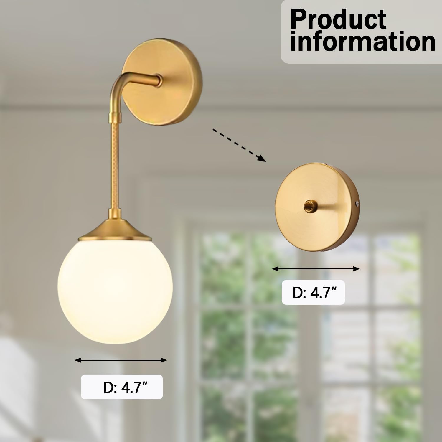 1-Light Wall Sconce Light, Gold Wall Light Bathroom Vanity Lights Modern Wall Light Fixture with White Glass Shade,