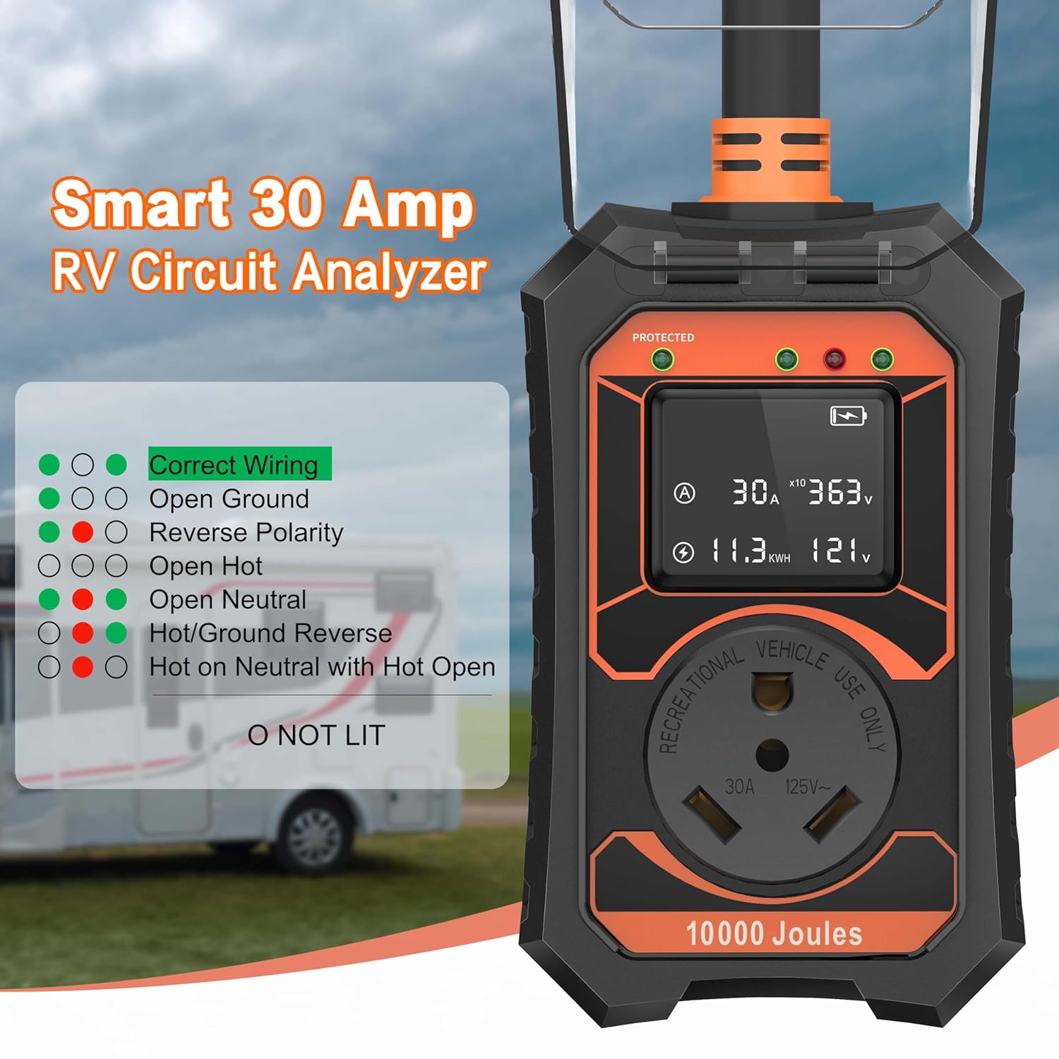 1 Pack RV Surge Protector 30 Amp Smart RV Circuit Analyzer with LED Real-time Display Voltage Current KWH 10000 Joules Portable Waterproof RV Surge Protector for Camper Travel Trailer Rv Accessories and 1 Pack Rv Roof Tape White 4 Inch X 50 Feet, Waterproof Repair Sealant Tape UV-Resistant & Weatherproof Rv Awning Repair Tape for Window, Vent, Boat Sealing, Truck Camper Roof Patch kit Metal Roof Sealant