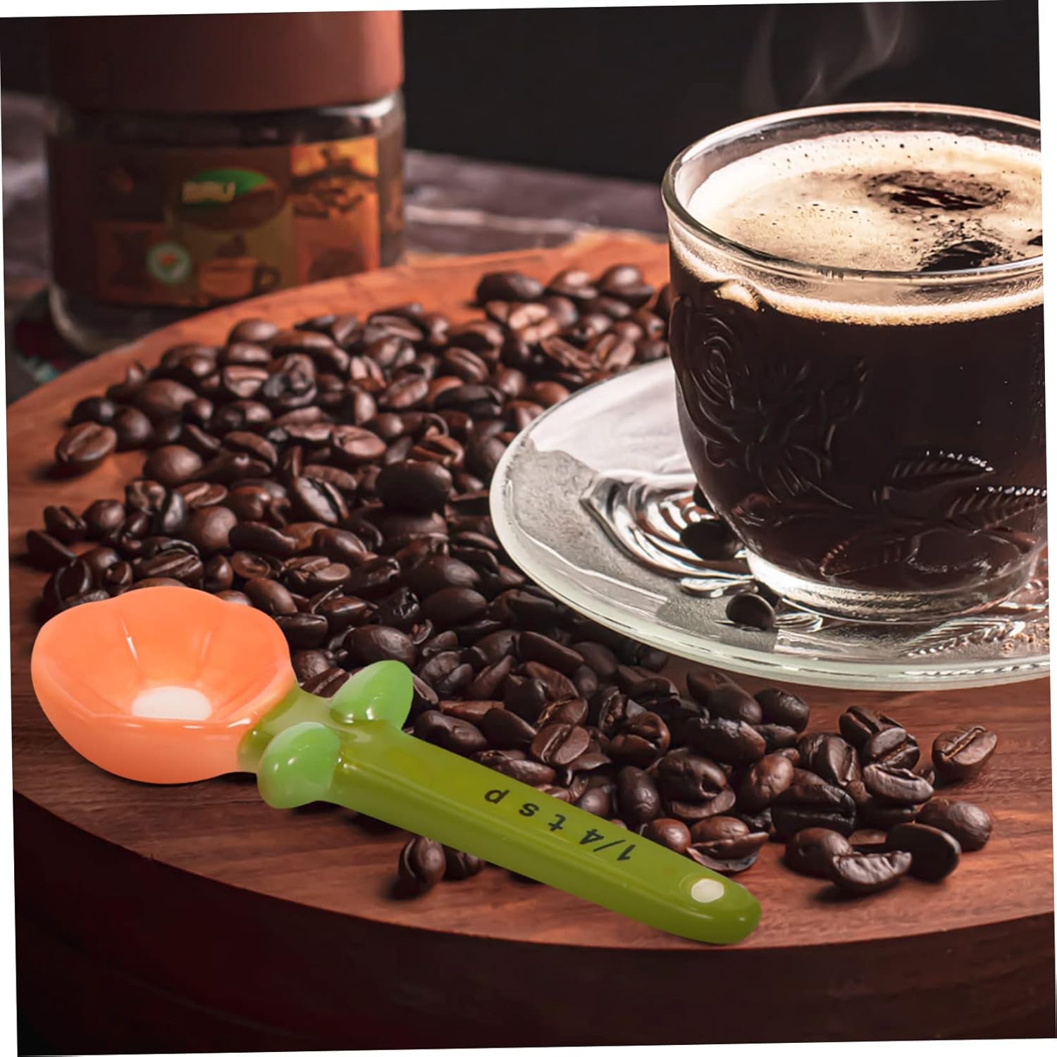 • FLOWER SHAPED MEASURING SPOON-- The bottom base is graduated and can be as a measuring cup.