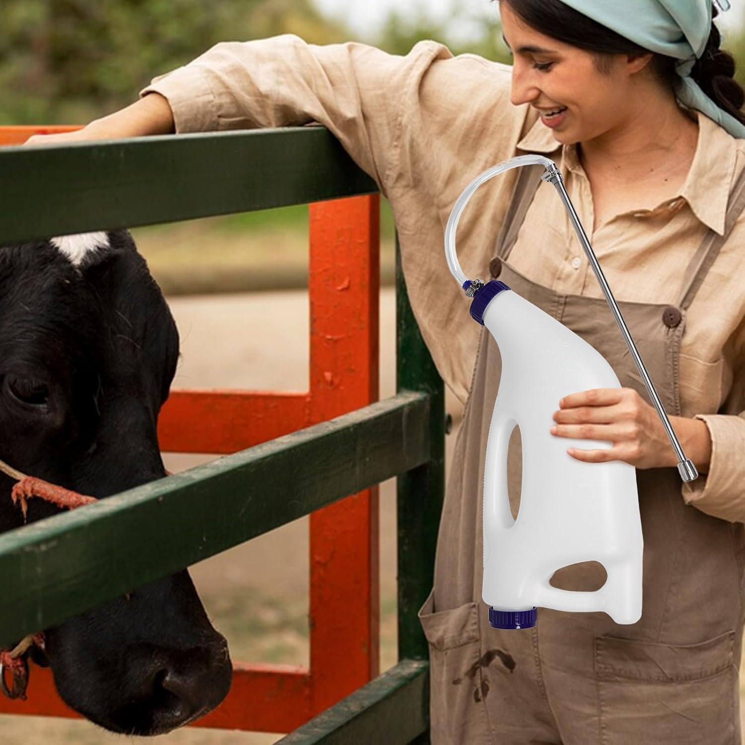 Description This calf feeding bottle is designed to make colostrum administration easy, boosting the immunity and health of newborn calves. Its large capacity allows for single feeding sessions, minimizing the need for frequent handling and increasing farm productivity. Constructed from robust materials, it is built to last and withstand the rigors. The feeder ensures accurate feeding amounts, preventing waste and ensuring calves receive balanced nutrition. The easy-to-clean design helps maintain hygiene, reducing the risk of digestive issues. Suitable for use as a calf feeder bucket, calf feeding accessory, and animal bottles for calves. Features - Color: White -Material:Plastic,latex - Size: 40.00X17.00X12.00cm/15.72X6.68X4.72in -Enhanced immunity: the calf nursing bottle is designed to facilitate easy colostrum feeding, enhancing calf immunity and supporting -Capacity: this calf feeding drinker providing sufficient milk in one feeding session, reducing the need for frequent refills and improving efficiency - use: constructed from durable materials, the calf tube feeder is resistant to wear and tear, making it ideal for longterm use on farms -Accurate feeding: the calf milk dispenser ensures precise feeding, minimizing waste and that calves receive the necessary nutrients for optimal growth - Design: the calf nursing bucket is designed for easy cleaning, ensuring hygiene and preventing digestive issues in calves