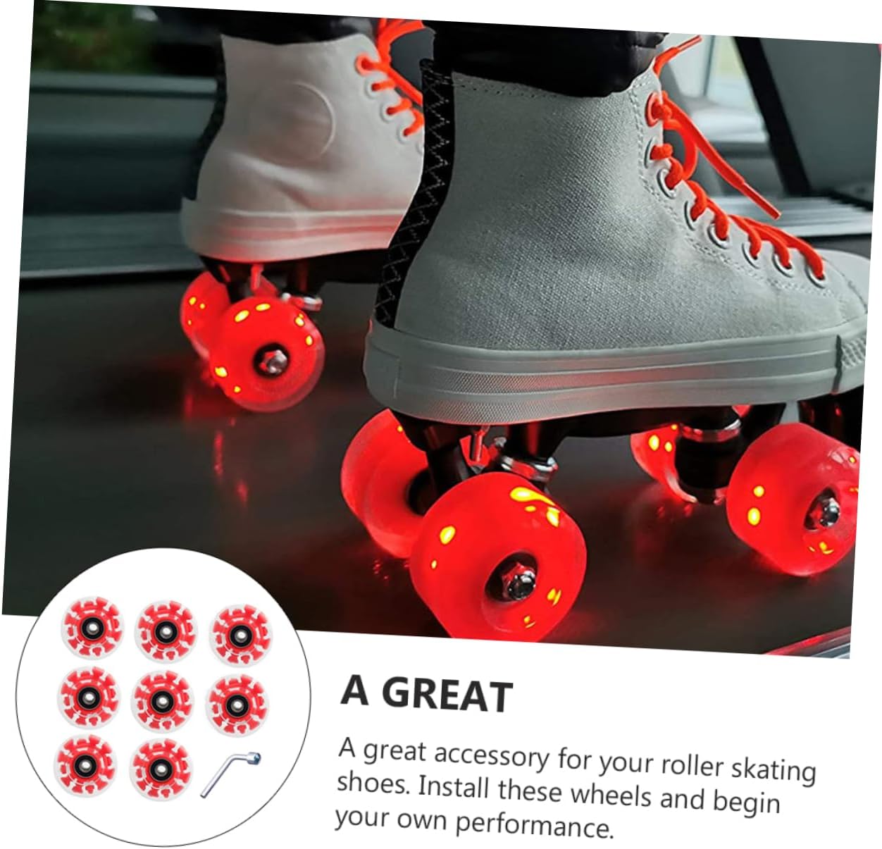 Package List 8 1 x wrench Features - Size: 5.40X5.40X3.20cm/2.12X2.12X1.26inch roller skate accessories. - Material: PU light up wheels for roller skates. - With , your skates will be eye-catching on the street at skates light up wheels. - Easy to install, highly resistant to wear and not easy to break light up skate wheels. - Work well with both flat roads and ramps. Suitable for beginners and professionals light up wheel roller skates. - It adopts premium PU material for and use flashing roller wheels. - Replace a roller skate or skateboard wheel for an old or broken one Roller Skates Accessories.Goods Descriptionroller skates light up wheels Are you looking professional, yet roller skate wheel? Are you in search of a trustworthy tool that can do multiple jobs at once? , ! Our roller skate wheel must meet your needs.roller skates glowing wheels It is one of the for you