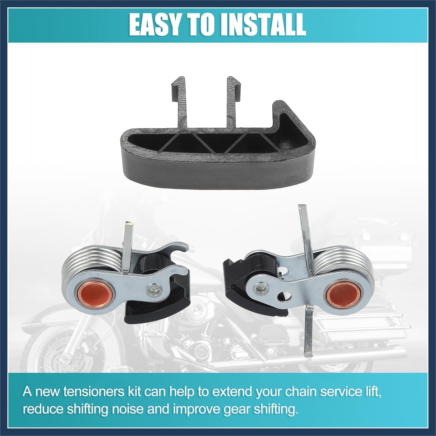 Feature:Good Quality: Made of good quality materials to improve reliability and durability.Direct replacement, no need to make any changes, match the .Please allow 3-5mm differences due to manual measurement.Easy to install, direct replacement for the old or broken one. Meets OE design for easy installation, good performance, and long service life.This is vehicle specific product, please make sure your car model before ordering.This is a non-OEM product, accessory only! Specification:Color: Black, Silver ToneMaterial: Metal, PlasticSize 1: 1.7cm / 0.67"Size 2: 2cm / 0.78"Size 3: 1cm / 0.39"Size 4: 1.7cm / 0.67"Size 5: 3cm / 1.18"Size 6: 1cm / 0.39"Size 7: 5.4cm / 2.13"Size 8: 2.8cm / 1.10"Fitment:for Harley Twin Cam 1999-2006Package Included:1 Set Twin Cam Chain Tensioner