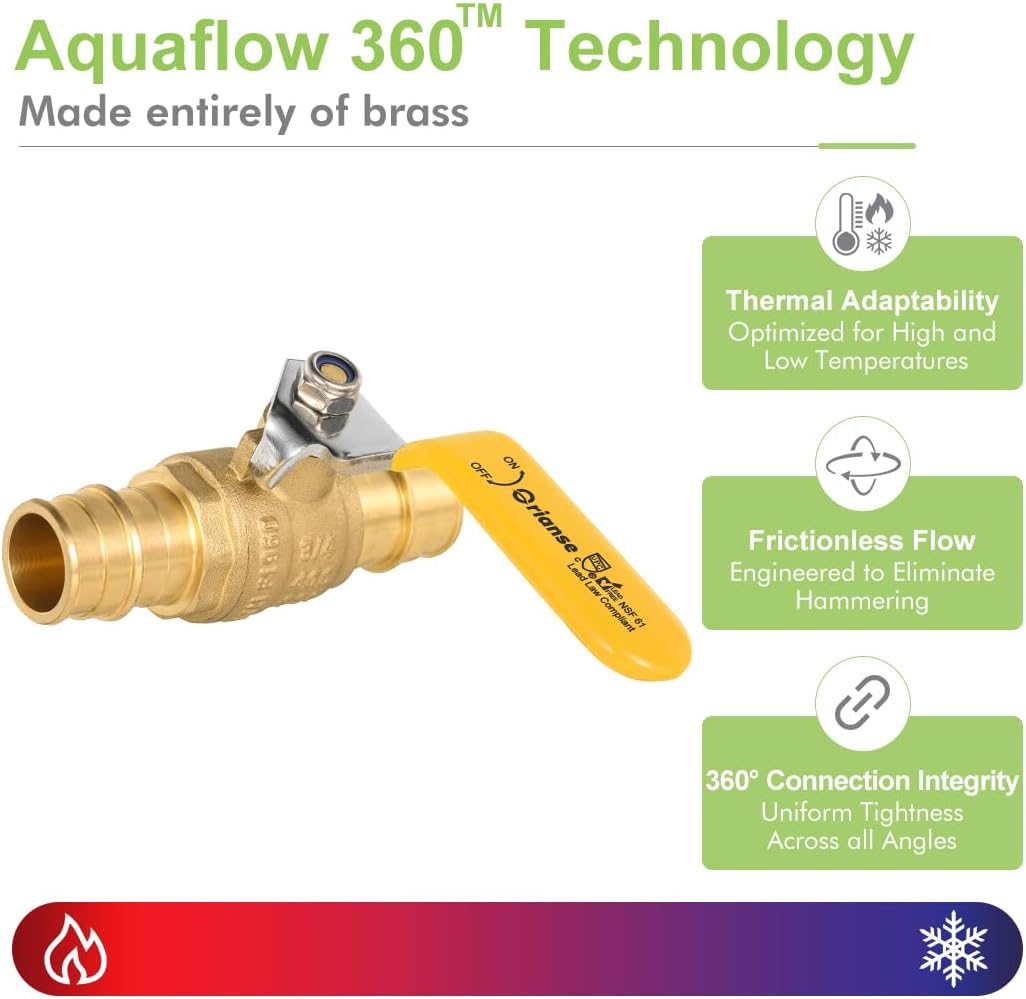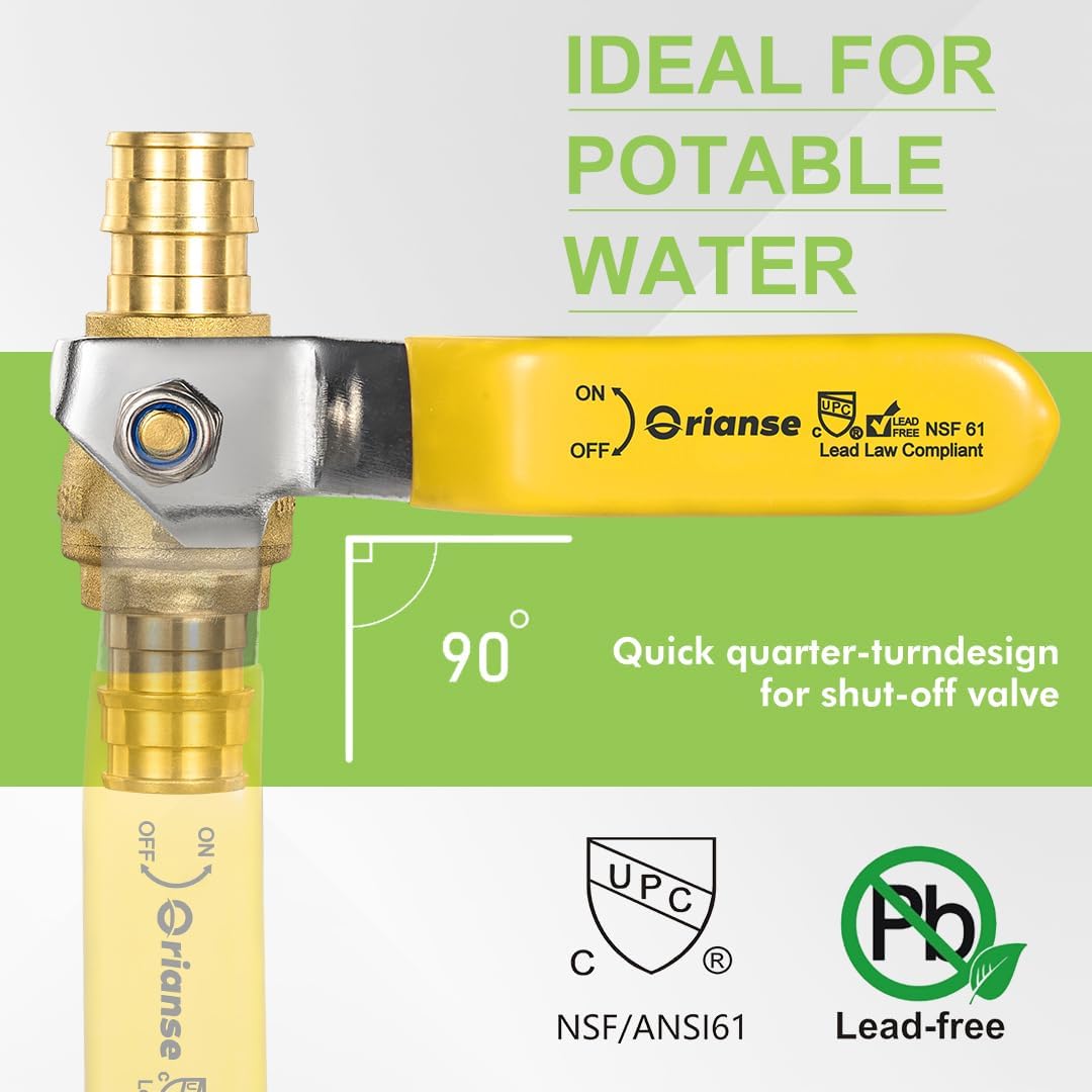 Certified Pex-A Ball Valve Lead Free Brass with ASTM F1960 NSF/ANSI 61. Hot-Forged for Superior Stability and Strength Compatible with Expansion sleeve Ring Systems Resistant to Corrosion Due to DZR Brass ASTM F1960 NSF/ANSI 61 NSF 372 Certified.