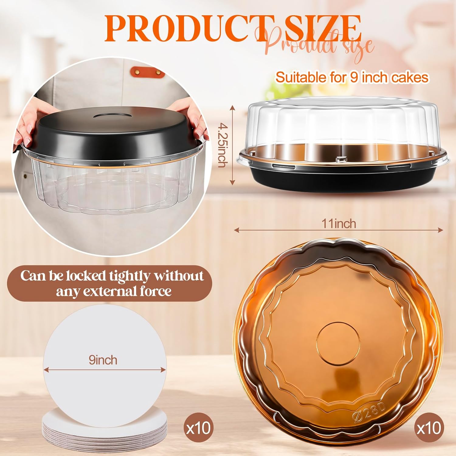 Features: Crafted from premium PET plastic, the cheese cake container containers are burr free and durable. Lightweight yet sturdy, these disposable plastic cake containers are suitable for showcasing everything from pies to cheesecakes. The 9 inch cardboard cake boards double as impressive cake stands for presentation, making them a versatile tool in your arsenal. They're suitable for displaying an array of delicious treats with convenience. Specifications: Material: Cake pies carriers: plastic Cake board: cardboard Color: multicolor Size: Package includes: Cake pies carriers: about 11in Cake board: about 9in Notes: Manual measurement, please allow slight errors on size. The color may exist a slight difference due to different screen displays