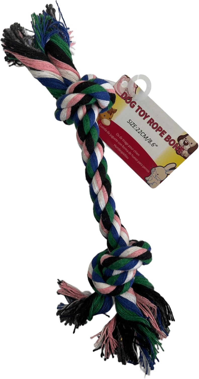 Keep your dog engaged and entertained with this 10 Pack of 8.6-inch Knotted Dog Rope Toys. Each toy features a colorful braided cotton rope with a fun bone design, perfect for chewing and play. The durable cotton material is gentle on your dog’s teeth, making it ideal for long-lasting use. Available in red and multi-color options, these toys add excitement to your dog’s collection while promoting healthy chewing habits. Whether your dog enjoys solo chewing or interactive play, this bulk pack ensures plenty of toys for every occasion. Each toy comes loose with a convenient hang tag for easy display.