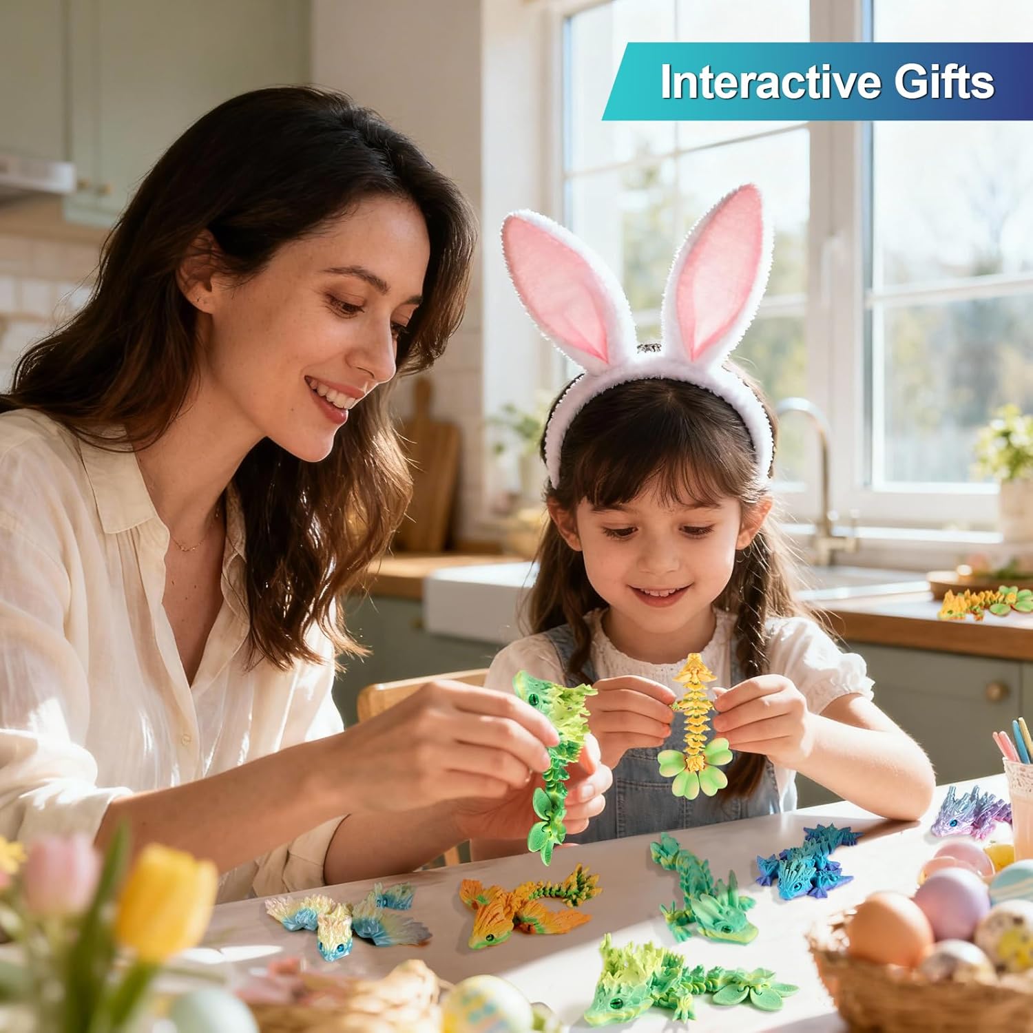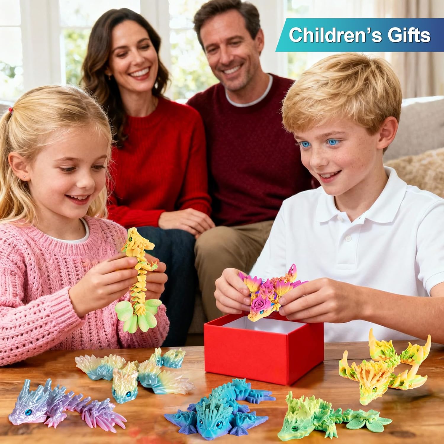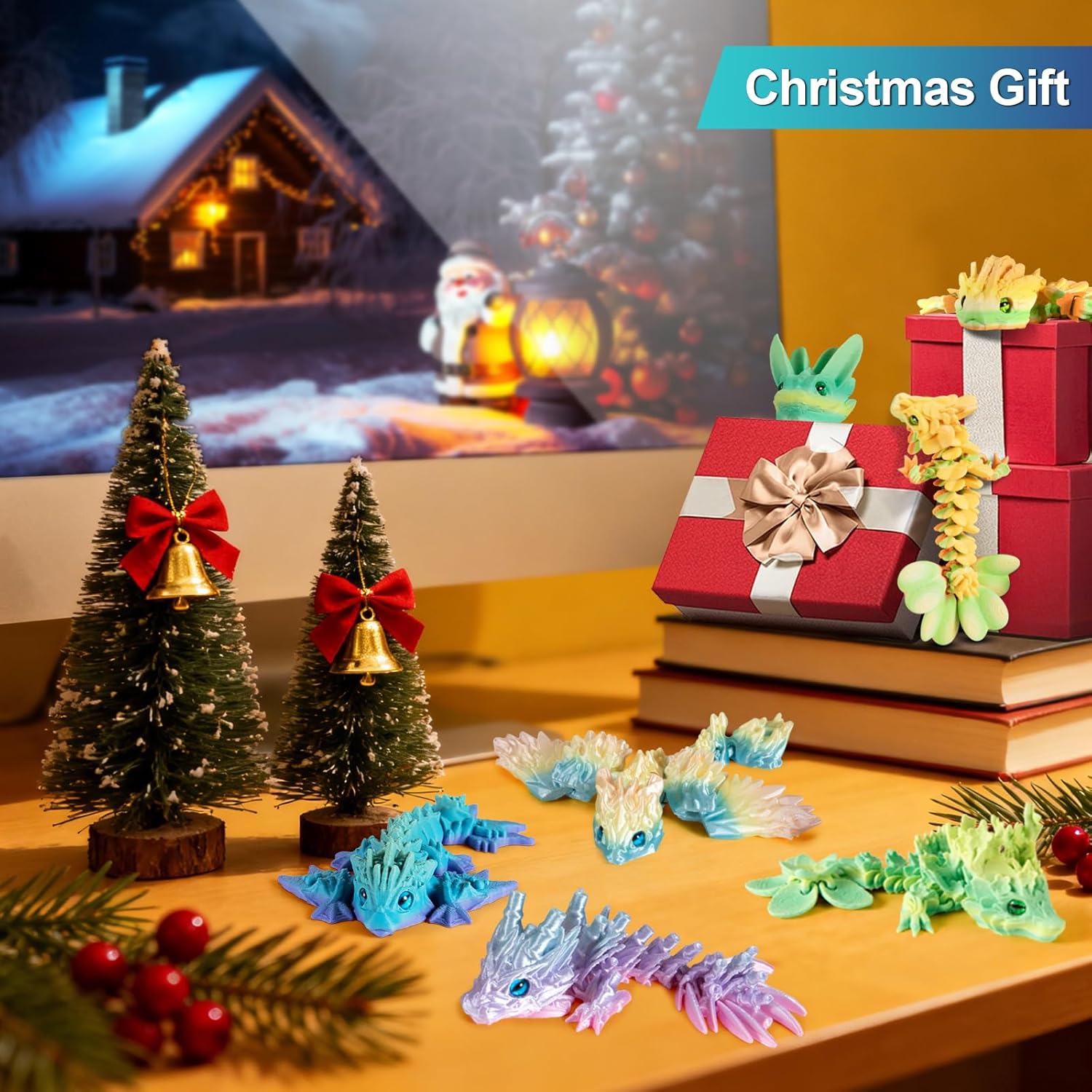 Dxldfks 10 Pcs 3D Printed Dragon with Eyes and Wings - Small Flexible Articulated Fidget Toys for Home Office Decor