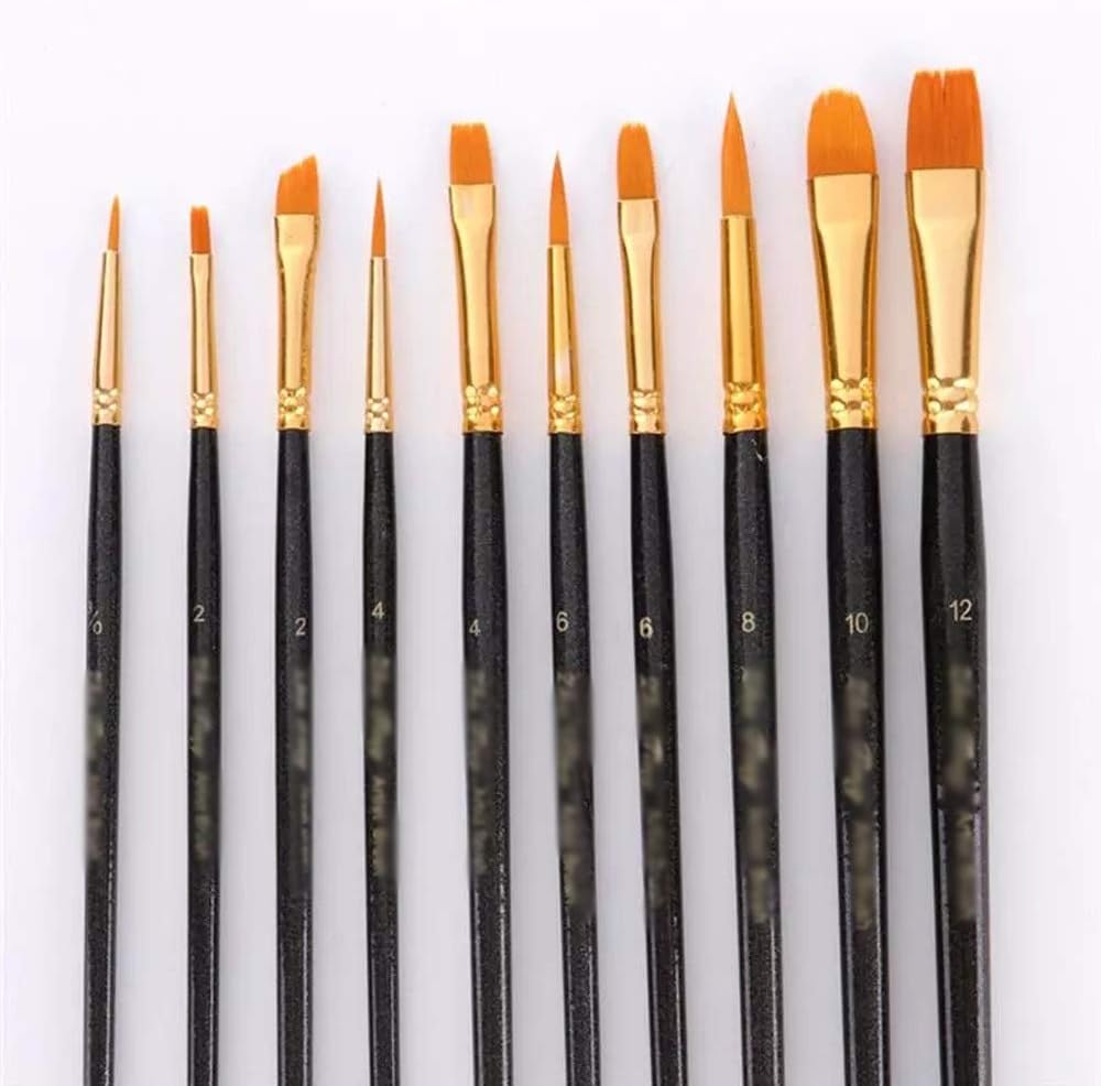 Feature- Color: As shown.- Material: Nylon and Wood.- Size: 19.7x1.5x1.3cm.- for every level of artists from beginners to professionals.- No matter your level of artistic experience or ability, this painting brushes set is a beginning tool.- Simply clean brushes with warm water immediately after use and reshape brush tip.- Convenient for travel and organization.- Warm Tip: Dear buyer, due to lighting effect, monitor's brightness, manual measurement, etc., there could be some slight differences in the color and size between the photo and the actual item. Sincerely hope that you can understand! Thank you!Packing list:10 x Nylon Hair Art Paint BrushGift for friends and family who love painting.
