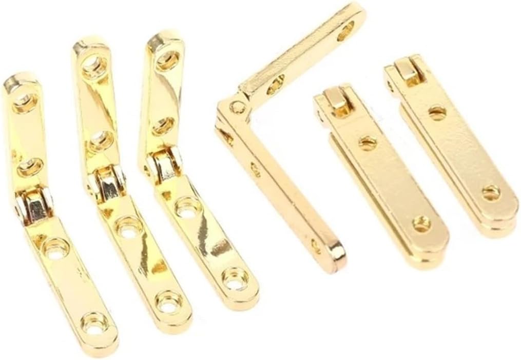 Features:* and*Made of material, and practical to use*It is made of zinc alloy material,strong and ,won't rust easily.*Suitable for jewellery box, wine box, box, chest, and so on.*This decorative hinge is for adding a decorative appearance to desks, cabinets, chests, and tables.*90 degree hinges is easy and simple to install and use.*Hinges only, other accessories demo in the picture is not included!Specification:Item Type: HingeMaterial: Zinc AlloySize: 30x30x6mm/1.18x1.18x0.23inColor: GoldQuantity: 10pcs/bagPackage Contents:10 x Hinges