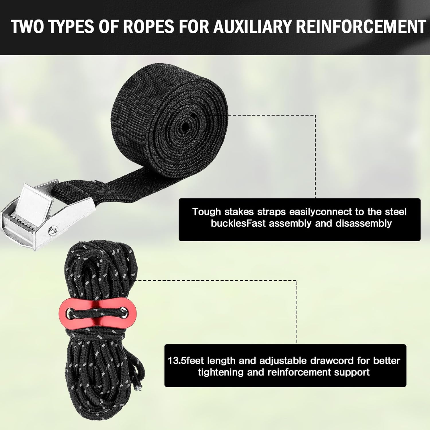 | Included Components | 10 x Ground stakes anchor set |