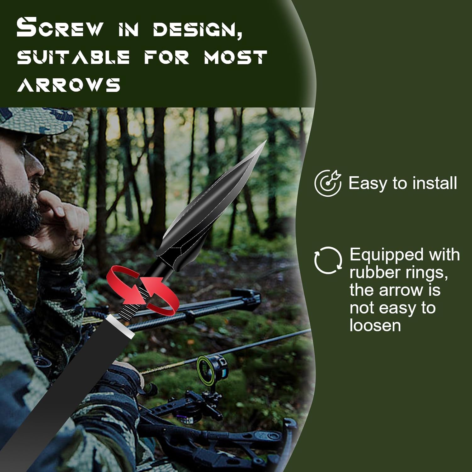 1 wrist bow release10 broadheads and 10 rubber rings are packaged in a plastic case,convenient to carry when going out.Screw-in arrow broadhead are suitable for various types of arrows, such as fiberglass arrows,carbon arrows, and crossbow arrows.Each arrow is equipped with one rubber ring to prevent the arrow from loosening.
