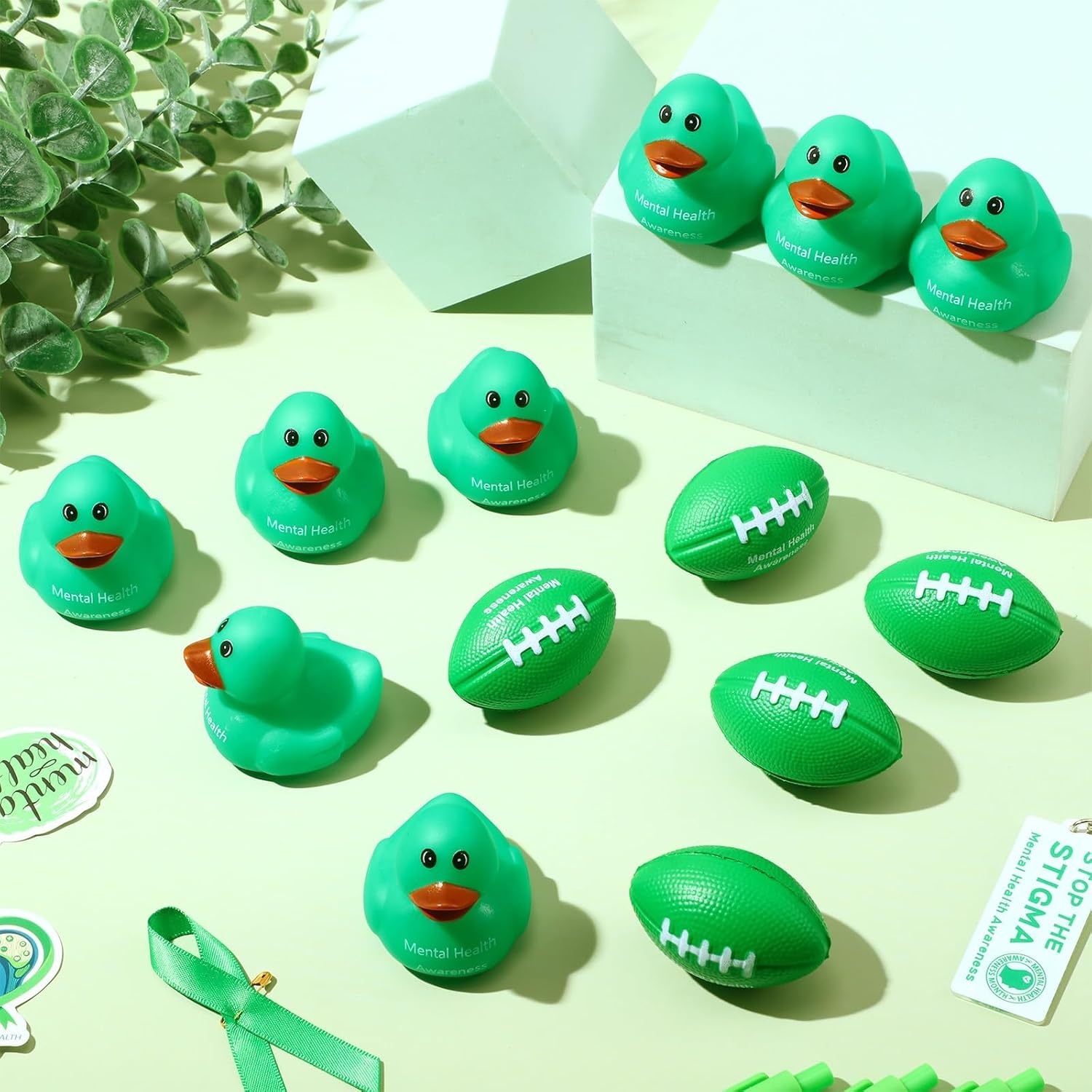 | Included Components | 50 x Green rubber duck, 50 x Mini football stress ball |