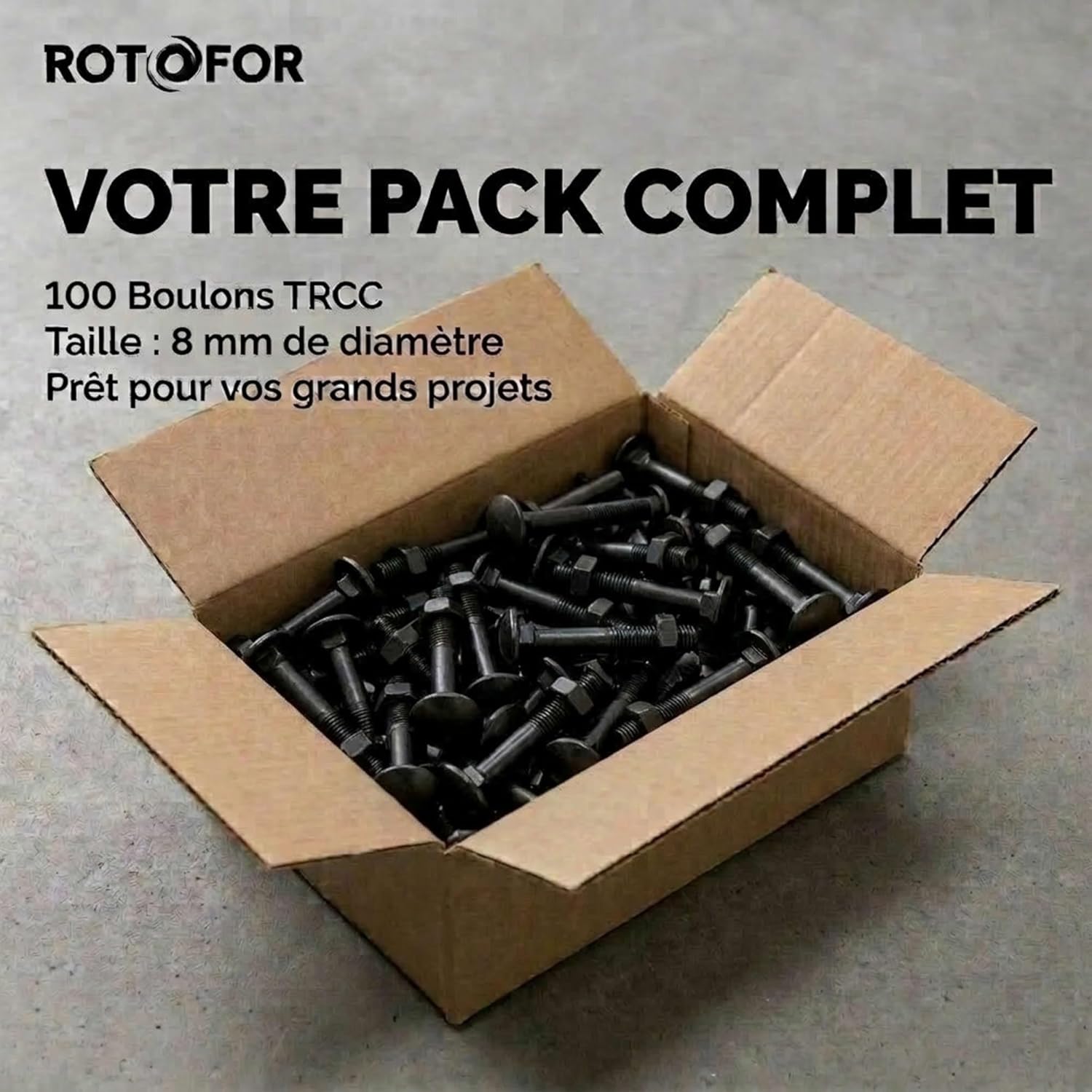 This set of 100 square neck round head bolts conforming to DIN603/555 is made of black zinc plated steel, offering excellent corrosion resistance. With a diameter of 8 mm, these bolts are ideal for various applications in the field of construction and mechanics.The square neck design allows a secure hold in the materials, thus preventing slipping when tightening. The black zinc plated finish not only adds protection against oxidation, but also gives a neat aesthetic look. These bolts are compatible with many types of fasteners and are ideal for projects requiring increased robustness and durability. Whether for DIY jobs or professional applications, this set of bolts will meet the most stringent requirements.Precise dimensions and build quality ensure optimal performance. This product is a wise choice for craftsmen, DIY enthusiasts and professionals looking for reliable fixing solutions. DIYER OPINION:
