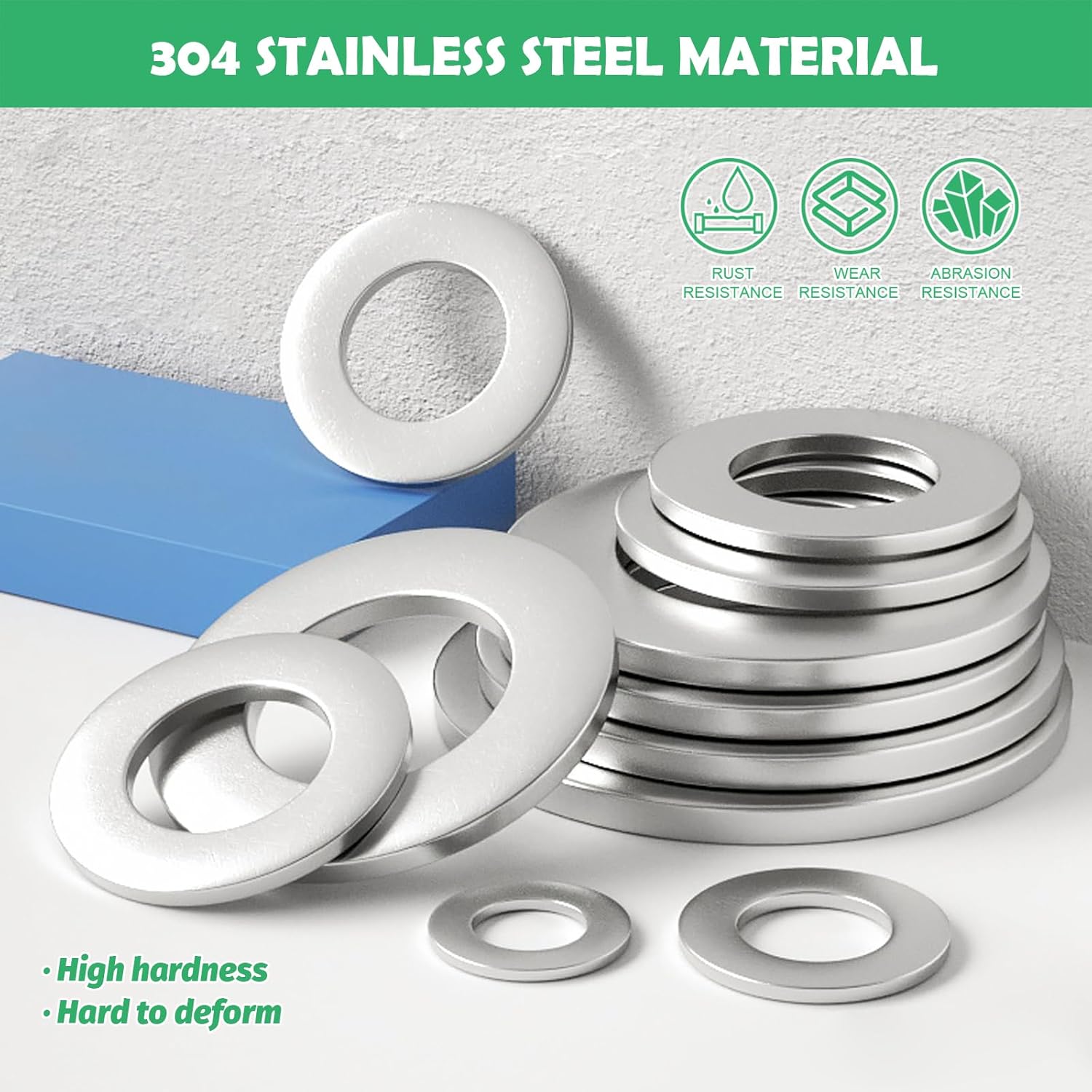 Yauhar 1000Pcs 9 Sizes 304 Stainless Steel Flat Washers Assortment Set for Screws Bolts, M2 M2.5 M3 M4 M5 M6 M8 M10 M12 Fender Washers with Storage Case for Industrial Automotive Home