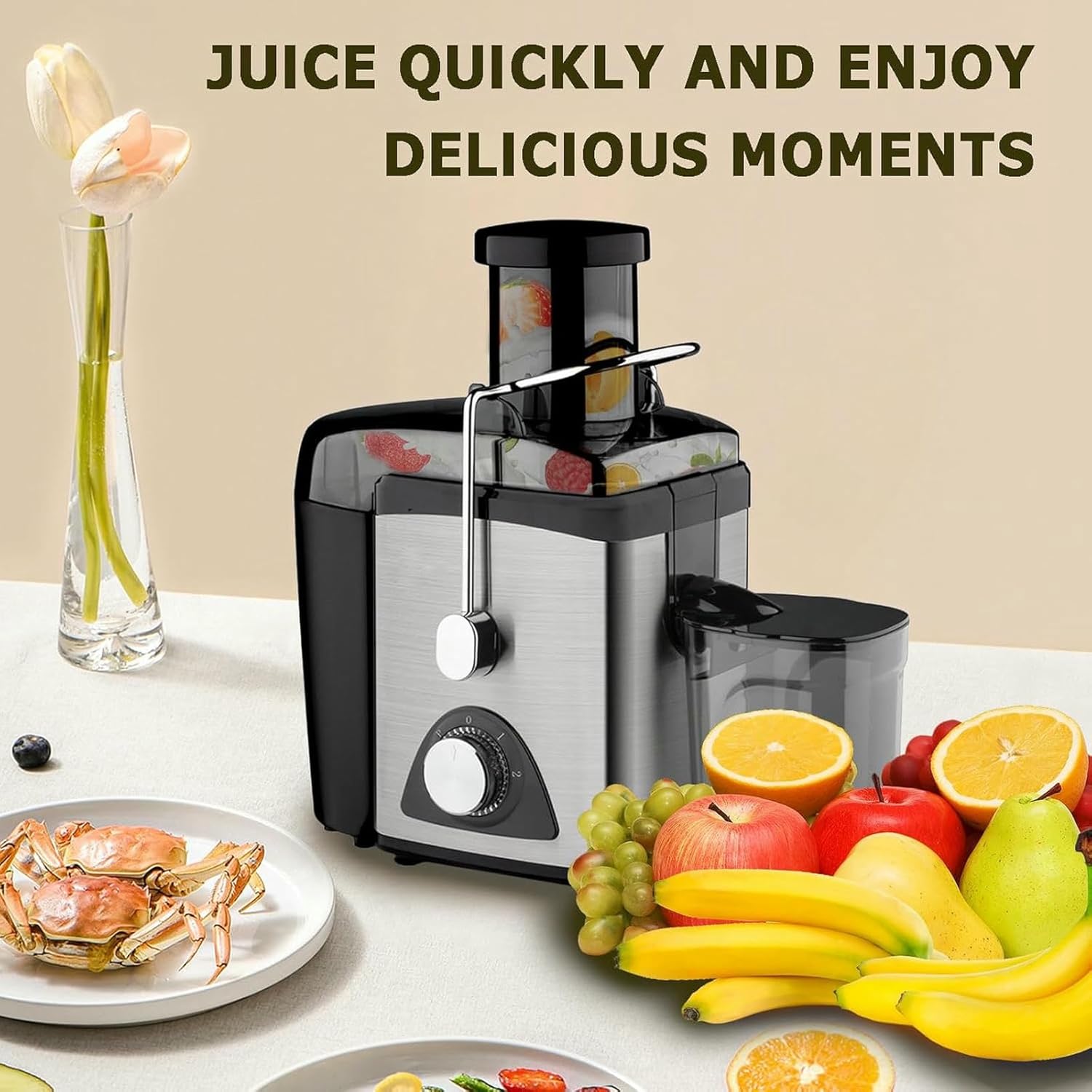Experience the benefits of fresh juices with our high-quality juicer machines. With a weight of 2800g and dimensions of 28.5 * 22 * 35.5CM, they are designed for efficiency and performance. The robust stainless steel liner ensures durability and exceptional quality. Each package comes complete with a measuring cup and juicer, equipping you with all the essentials to prepare healthy, homemade juices.