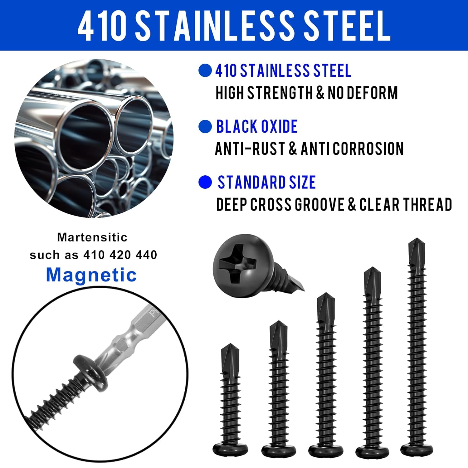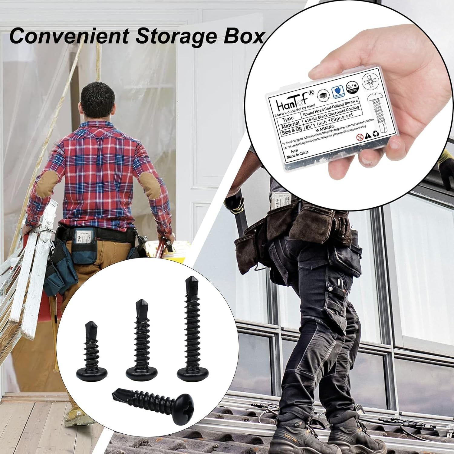 🔥 【HanTof 410 Stainless Steel Torx Pan/Round Head Self Drilling Screws 】Pro-Grade Corrosion Defense · Effortless Installation · Lifetime Durability🔥Why Choose Us? 1 - ✅ Military-Grade Rustproof: 410 stainless steel + black Dacromet coating passes 240-hour salt spray tests— corrosion-free in humid/salty environments! 2 - ✅ Drill & Fasten in 1 Step: Self-tapping tip pierces steel instantly. Works on wood, metal, plastic—50% faster installation! 3 - ✅ Purchasing in one size #8 x 1" (M4.2x25mm) (Pack of 100) often reduces the per-unit cost compared to buying Various sizes. This is economical for both frequent users and those stocking up for future needs. 4 - ✅ Ultra-Hard Surface: HV450+ hardness resists scratches, maintains thread integrity, and delivers 800MPa tensile strength! 5 - ✅ Smart Storage: Transparent PP case with magnetic bit slot—keep tools organized on jobsites or workshops! Perfect For: 🏗️ Roofing panels | 🛠️ Furniture assembly | 🚗 Auto body repair | 🏡 Outdoor fencing【Package Included】 #8 x 1 inch(M4.2x25mm)------------100 Pieces T20 Torx bits------------1 Pieces - Total Quantity: 101-Pieces/set. - Whenever you need us, please contact us by email or Q&A, we will give you a Professional Service and reply you within 24 hours. - ⚠️⚠️⚠️Attention: Products contain small parts, keep away from children to prevent mistaken swallow ! - ⚠️⚠️⚠️There are uncertain risks when using screws. Please take protective measures to avoid accidents during operation!