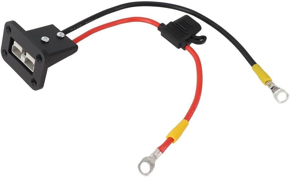 Product description Features:- and - Made of materials, - Waterproof/weatherproof rubber seal to for ensure good with FOR cable.- Electron beam crosslinking agent; , hydrolysis, high temperature, cold resistance; material will not melt.- Silver plated ring terminal on end and 50A FOR connector on the other; provides a seamless connection to any device or electrical , such as using FOR style battery boxes or solar panels; and comes with two 8mm ring terminal for easy connection to your battery, making this cable the main fuse connection point.- This product is suitable for power supplies, electric vehicles, material handling equipment, rechargeable battery applications, power distribution equipment, industrial equipment.Specification: - Product: 10AWG 50Amp for Extension Cable- Material: PVC + Copper- Extension cord length: 300mm- Cable Type: 10AWG + M8 Binding Post Red/Black Sheath+Bracket Panel - Nominal voltage: 1000 V DC- Temperature class: 40C-125C- Quantity: 1PCS- Color as shownPackage Included:1 *30CM 50Amp connector + M8 + fuse 10A+Bracket Panel Manufacturer Contact Information no