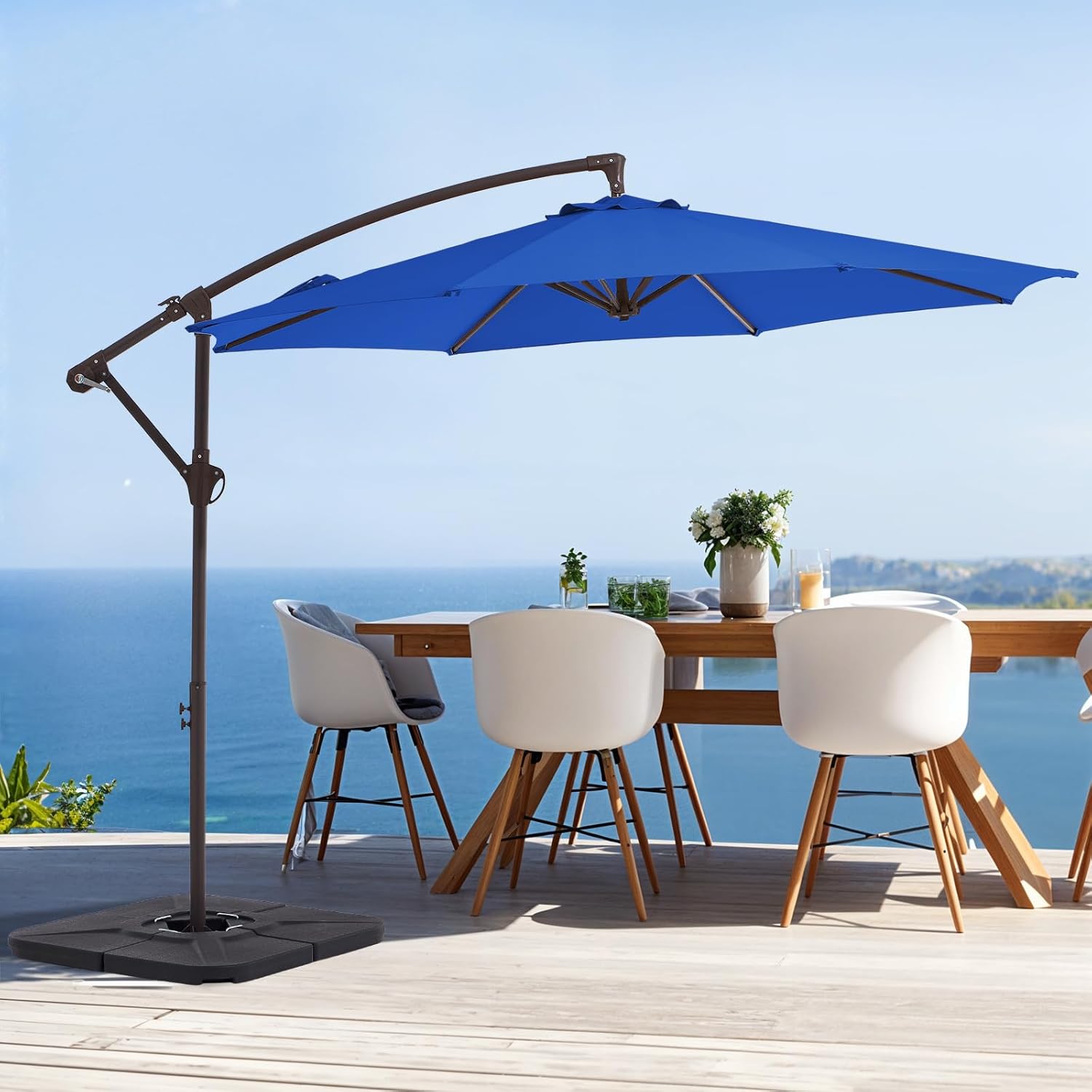 TOTALDAY 10FT Patio Umbrella, Outdoor Offset Cantilever Umbrella with Sturdy 8 Rids, Easy Tilt Adjustment for Backyard Pool Garden