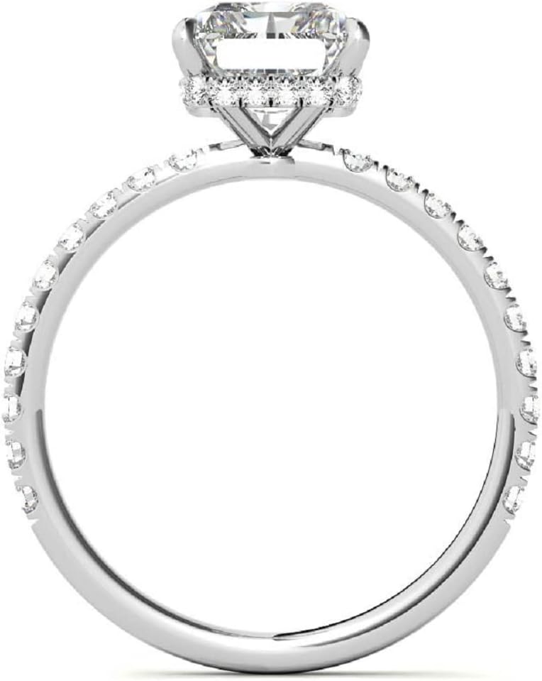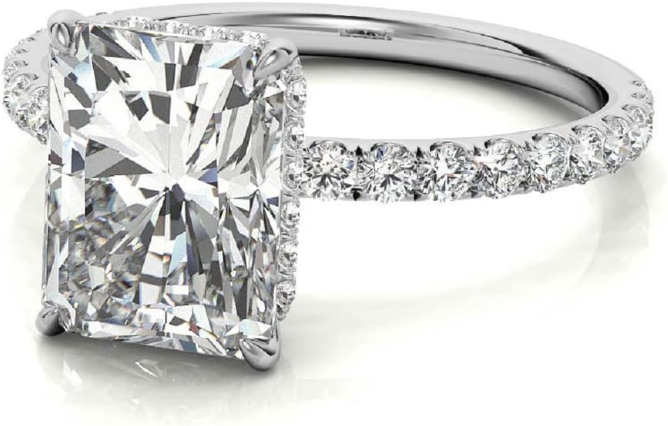 Main Stone: Moissanite, Main Stone shape : Radiant Brilliant Cut, Main Stone Color: Colorless, Main Stone Clarity: VVS1, Main Stone Luster: Excellent, Main Stone Weight: 1.00 CT (7X5 MM) Approx, Side Stone: Round Brilliant Cut, Side Stone Color/Clarity: White/VVS1, Side Stone Weight: 0.35 CT Approx, Type: Handmade Ring, Setting Type: Prong Setting