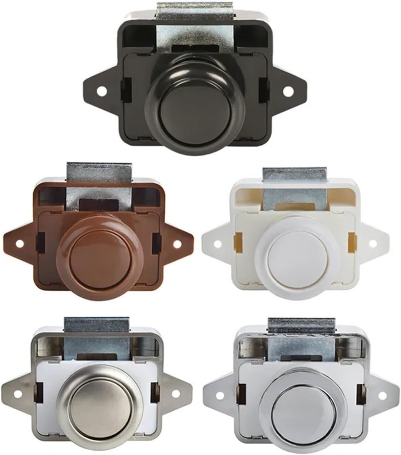 Locks Specifications: Material: ABS + zinc alloy Size: as the picture shows (next) Cutting hole (diameter): 26 mm Fit for door thickness: 15mm-27mm Finish: Brown / Pearl Nickel / Chrome / White / Black Suitable for: all kinds of marine/onboard RVs, land furniture drawers, cabinet doors, cabinet furniture as use. Package includes: 10 x locks with matching parts