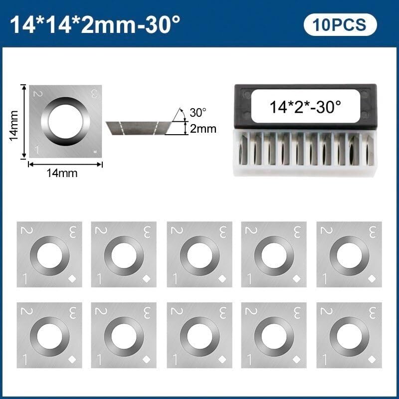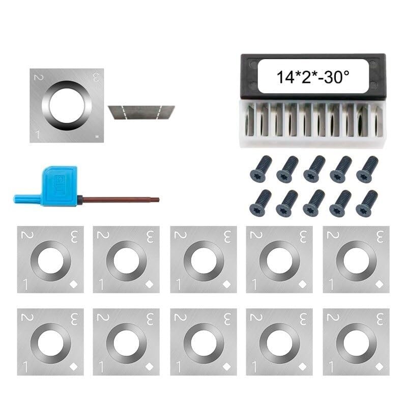 Specification:Competable: Woodworking Fits Spiral Helical Planer Cutter Head or lathe Turning Tool TippedApplication: hardwoods and softwoods,HDF, MDF,plywood, chipboard, particle board,etc.Item: TCT Reversible Planer Cutter Inserts BladeSize:14mm lengthx14mm width x2.0mm Thick: 30 degreeHole: one countersink holeShape: 4-Edges,SquareScrews: M6*15mm10pcs with screw including:10pcs Carbide Insert10pcs M6 Screw1pc Wrench10pcs without screw including:10pcs Carbide Insert