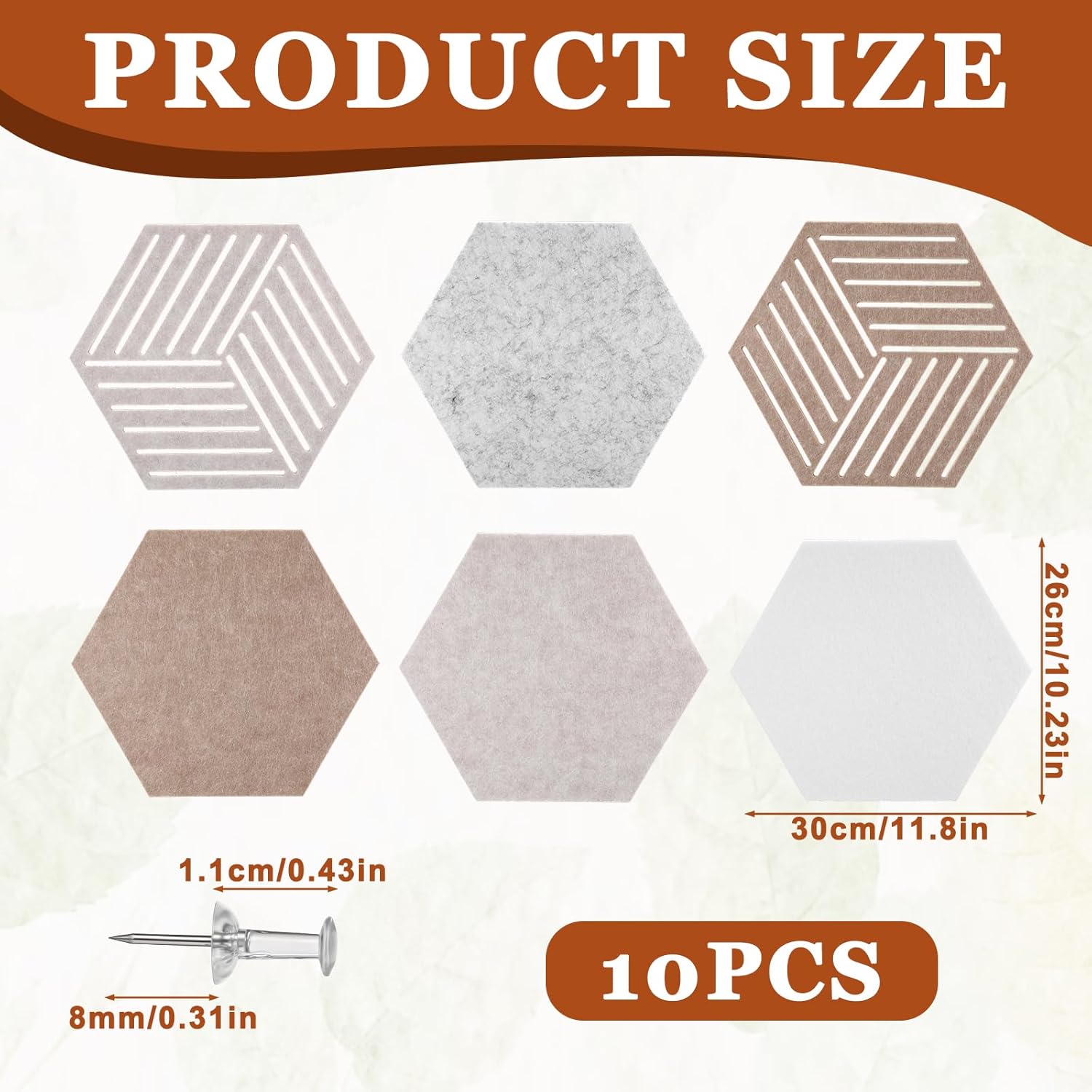 Product Name: 10Pcs Hexagon Felt Cork BoardProduct Color: Khaki & WhiteProduct Material: FeltProduct Size: Length 30cm/11.8in & Width 26cm/10.23in & Thickness 1cm/0.39in