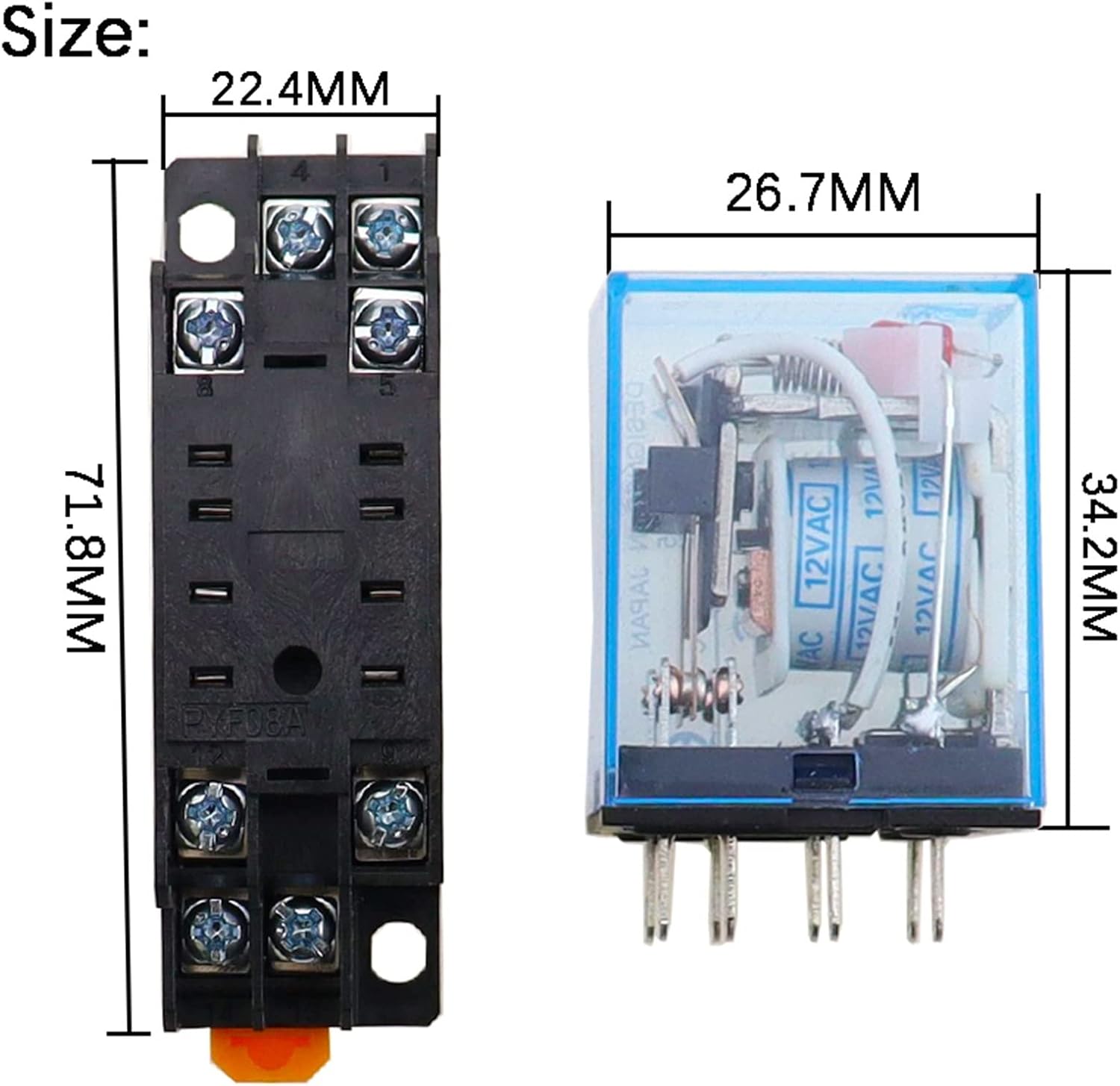 relayElectromechanical RelaysProduct Name:Power Relay + SocketModel No.:MY2NJAction Type: DPDTCoil Voltage:DC12V24V36V48V110V220V380VContact Capacity:5A 240VAC5A 28VDCPin Quantity:8Mounting Rail Type: 35mm DIN RailOverall Size(Approx.): 7.8 x 6.5 x 2.3cm/3.1" x2.6" x 0.9"(L*W*H)Material(External): Plastic MetalPackage Content:10 x Power Relay10 x Socket