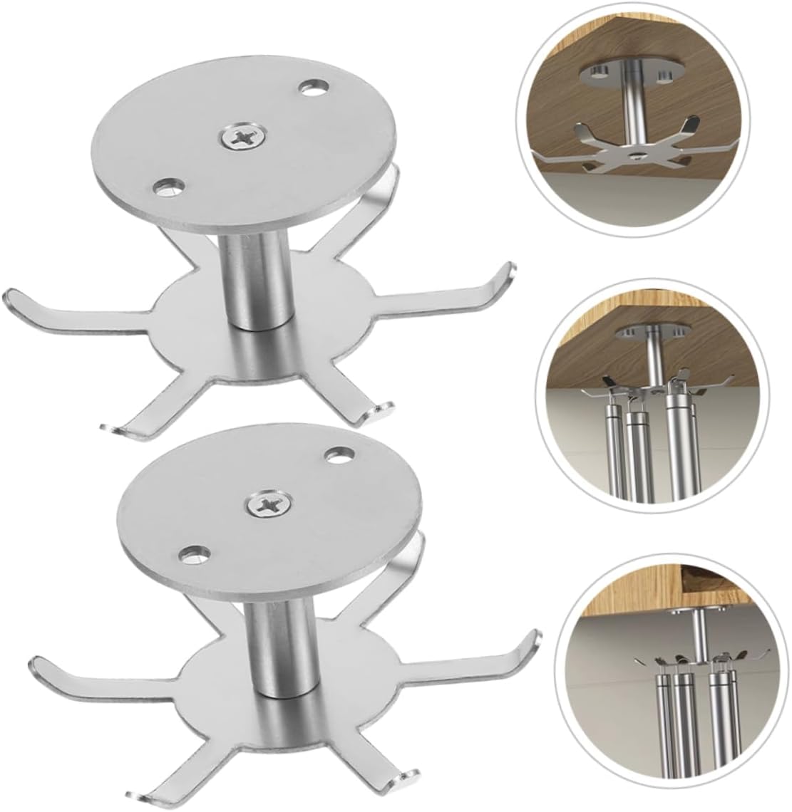Package Include 5 pcs × Kitchen Utensil Hangers 5 pcs × Screw Kits Characteristics -Color:Silver Multi-function Hangers -Size:9.00X9.00X4.50cm/3.54X3.54X1.77in Kitchen Hooks For Hanging -Material:Stainless steel Rotating Hangers - The multifunctional rotating design can easily help you store utensils such as spoons, spatulas, and tableware Stainless Steel Cookware Hanger. - Great for storing and organizing kitchens utensils and keeping all within hands reach Rotatable Hook. - The material is and , which is wear resistance and for the longtime use Kitchen Cabinet Hooks. - This kitchenware organizer isn't just for the kitchen, it's for hanging keys, bags in cabinets, and other pendants Rotating Hooks. - Maximize unused space and turn it into an additional storage opportunity, small kitchen and bathroom Cabinet Hook.Goods DescriptionRotatable Hanger With craftsmanship, and kitchen utensil hanger is carefully designed to be rotatable for your better access.Utensil Hangers This simple and kitchen utensil hanger, mainly made of stainless steel material, lightweight and , with texture