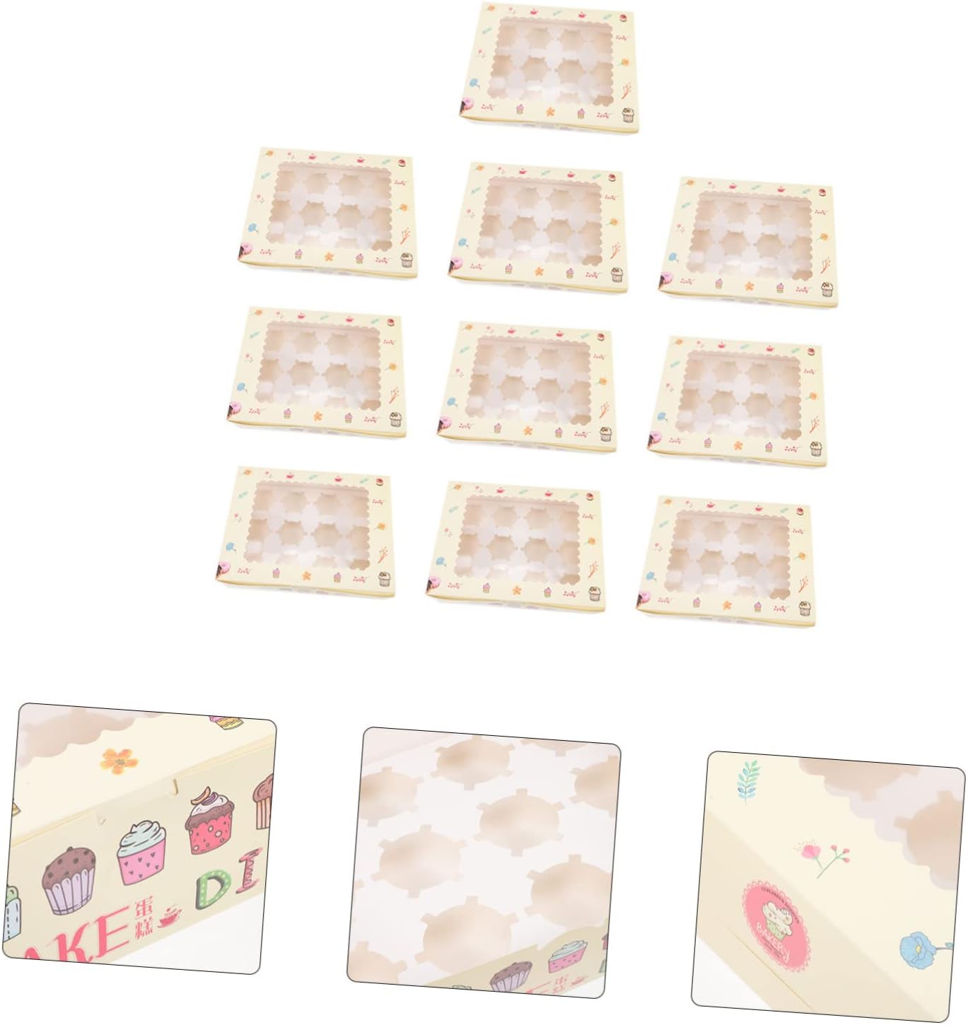 Package Include 10 x cake packaging boxes 10 x divider trays(12 Cavity) Characteristics -Color:As Shown paper bakery boxes -Size:32.50X25.00X9.00cm/12.77X9.82X3.54in small cake boxes -Material:Paper cake boxes paper - This box can be widely applied for storing cake, candies, chocolates, mints or smaller baked goods cake packaging boxes. - The assembly process is quick and easy, complicated tools, glue or special skills are required packaging boxes. - Providing excellent storage space, and can also be folded flat for easy storage and portability cookie boxes. - Light weight, compact size, easy to carry and convenient to take to any places you want pie boxes with window 9x9. - You can use these multi-purposes boxes as corporate retail boxes, wedding welcome boxes, holiday present boxes, better meet your demands candy packaging box.Goods Descriptionfood container Made of paper materials, light and safe, easy to carry to the places you need, and store, display your food very well.cake packaging boxes It is widely applied for birthdays, weddings and other occasions.small present boxes These are some packaging boxes for candies, cake and many other food