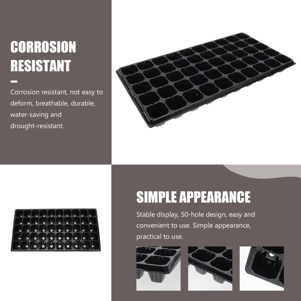 Package List 10 x Germination Trays Features -Size: About 54.00X28.00X5.00cm/21.22X11.00X1.97inch. -Material: PP. -Color: Black. -Product Info:Seedling tray - It is made of plastic material and will not be easily damaged. - You just plant your seedlings and plant them in your yard or garden without removing them from the pots starting trays. - Waterproof, and , it is easy to clean planter trays. - A germination box has 50-cells, which is convenient for your use grow tray. - It has powerful functions and can germinate many types of plant sprout tray.Goods Informationsprouts growing tray It is one of the for you.vegetable planting tray Are you looking for a , yet nursery pot? Are you in search of a sturdy, trustworthy garden tool that can do multiple jobs at once? , ! Our nursery pot must meet your needs