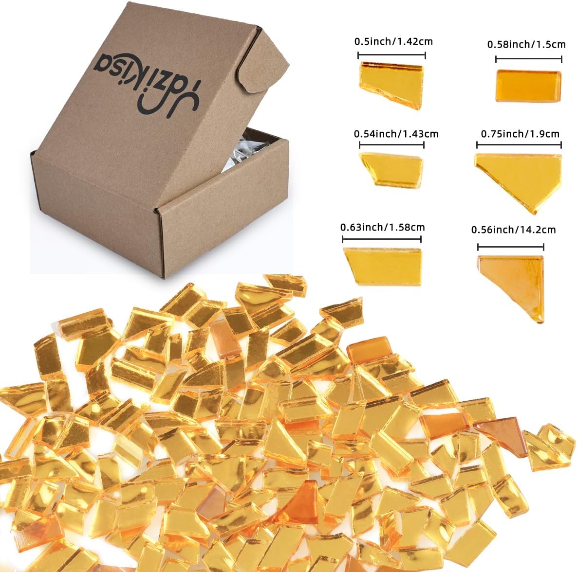 Irregular dazzling glass mosaic tiles in various shapes colors. Having all these precut beautiful Irregular shapes, but will inspire you when trying to create new designsSpecifications:Material: Glass mosaicShape: Irregular Weight: 1.1lb/500g1. Our mosaic tiles are made of glass and rich color is not easy to lose color, offer a diverse range of color themes. 2. Its surface and four edges have been polished smoothly without any sharpness and ensuring uniform thickness.Easy to Use:1. Durable strong mosaic tiles with texture on back for better adhesive grip.2. Designed for hassle-free application, our glass mosaic tiles eliminate the need for time-consuming cutting.3. Save you hours of cutting as well as wasted glass fromDIY Supplies:1. Our mosaic tiles for all kinds of DIY projects.2. You can use your imagination and creativity, to make every photo frame plate, cup, plant pot, wine bottles, coasters, etc. one-of-a-kind3. For DIY garden mosaic art craft projects, Such as outdoor tables and chairs, table lamps, photo frames, Vase, wine bottles, pen holders, candle holders, coasters, etc.Note:Due to lighting effects, monitor's brightness contrast settings etc, there could be some slight differences in the color tone of the pictures and the actual item