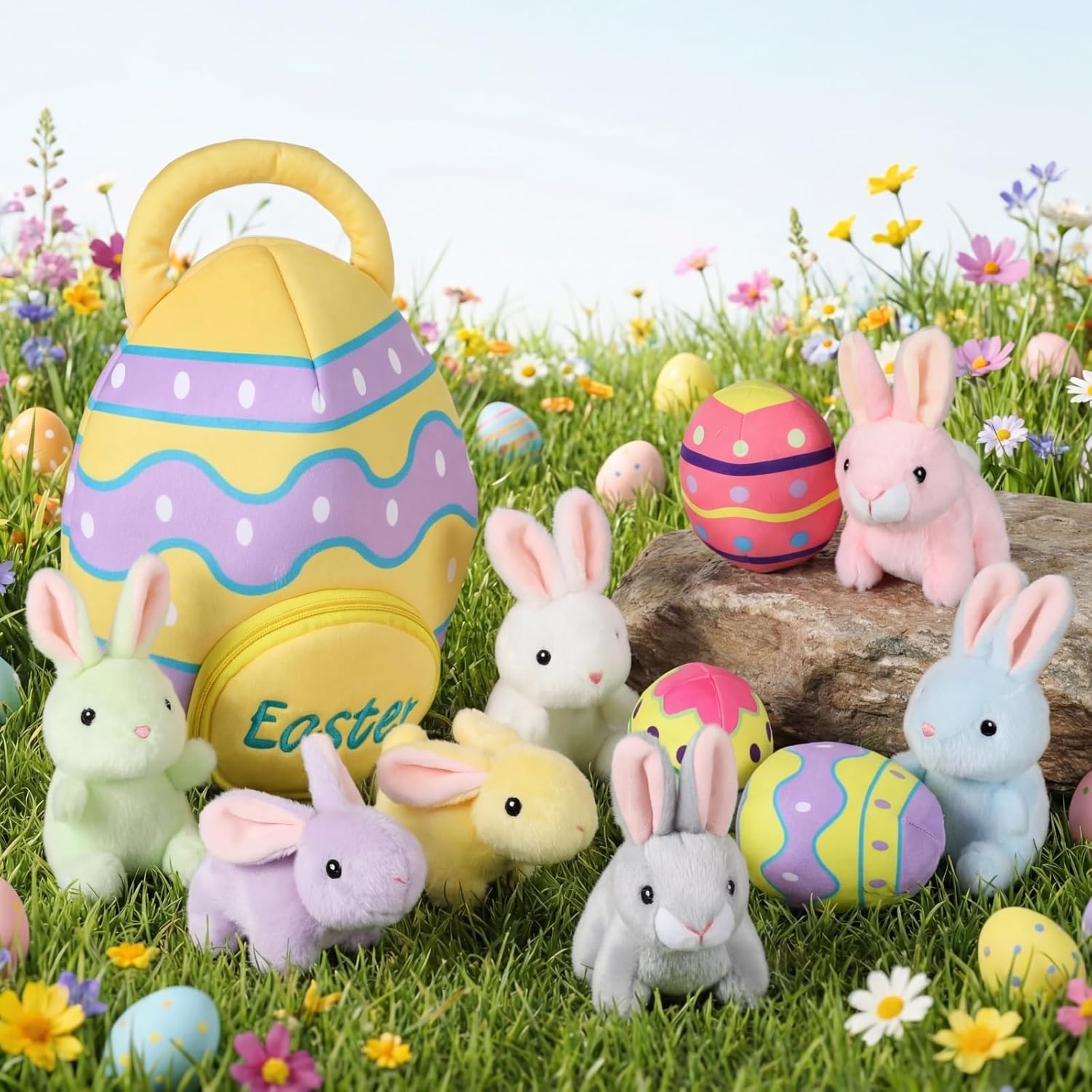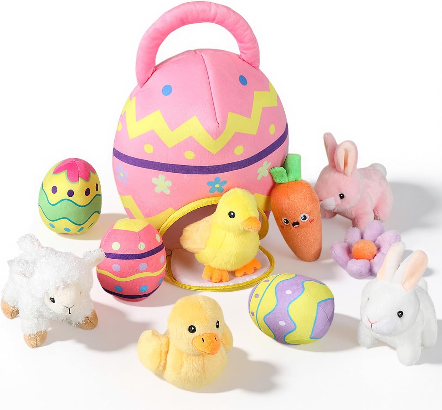 Features: Space-Saving Vacuum Packaging Each set is vacuum-packed in a protective box or bag for efficient storage and shipping. After opening, gently fluff the plush items to restore their original shape, ensuring a full and soft appearance ready for display or use. Bright Colors and Adorable Spring Design Each plush features vivid colors, soft pastel tones, and expressive details that capture the cheerful spirit of spring. The charming egg and animal designs add warmth and fun to Easter displays, gift baskets, or holiday-themed rooms. Specifications: Material: plush fabric Color: bright colors Size: Easter egg bag measures about 11.81 inches/ 30 cm Mini eggs are about 3.94 inches/ 10 cm Plush rabbit is 3.94 - 4.72 inches/ 10 - 12 cm Package includes: 1 x Easter egg bag 3 x Mini Easter eggs 2 x Rabbit 1 x Chick 1 x Duck 1 x Lamb 1 x Carrot 1 x Flower Notes: Manual measurement, please allow slight errors on size. The color may exist a slight difference due to different screen displays