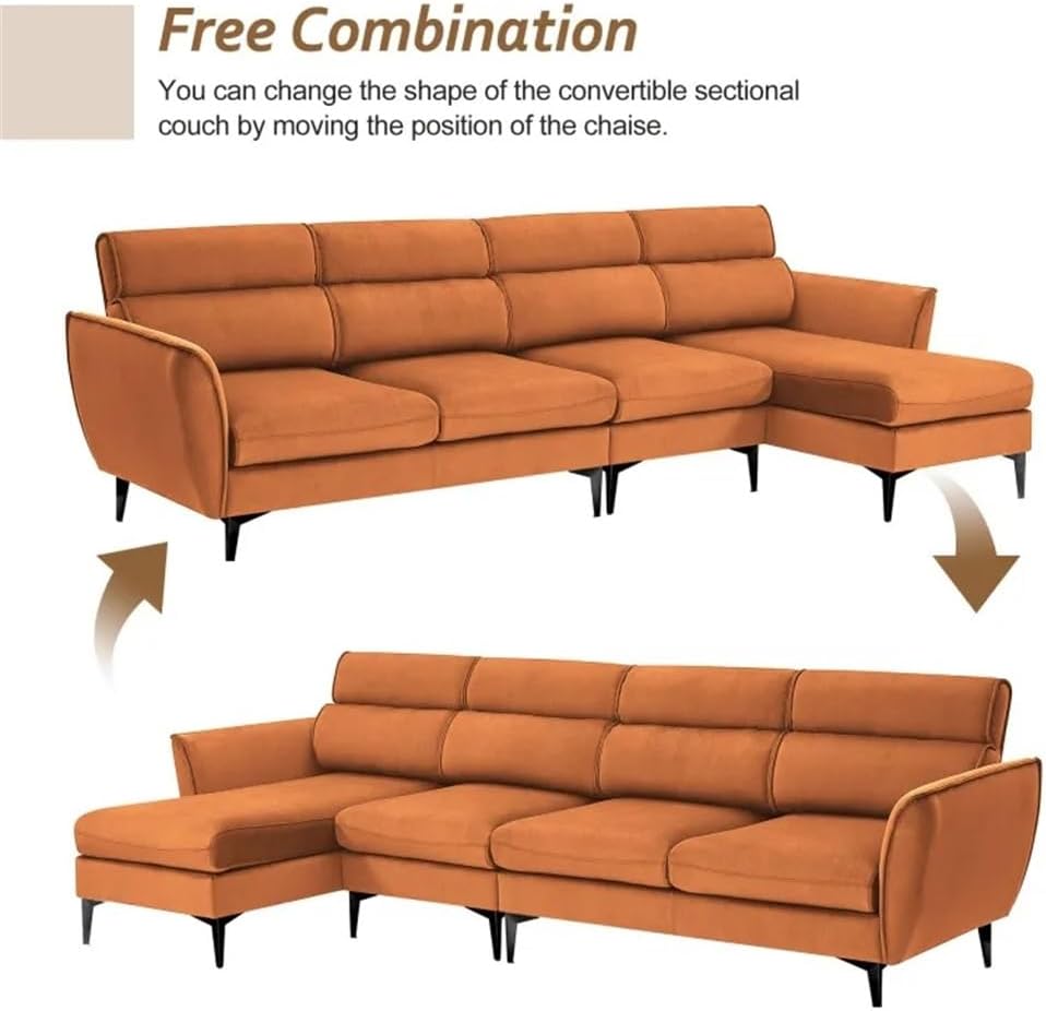 Sofa are made of Flannel, which is comfortable to the touch and easy to clean. At the same time, the sturdy wooden sofa frame and stable metal legs will give you a solid structure. We have also upgraded our sofa cushions, adding spring packs. All of this will make you more comfortable when you sit on it.The combination sofa is ergonomically designed with an back angle, 22'' seat depth and cushions formulated with high-density foam to ensure maximum comfort and relaxation.Stable metal legs, more functional, more , easy to clean,The height allows the robot to pass freely.This versatile sofa can be placed in the living room for watch TV, play games or read; in the office, it can be used as a lunch break to save space for a compact design. It's definitely a good idea to put in a room, dorm, apartment, studio, office.You can change the shape of the convertible sectional couch by moving the position of the chaise. You can adjust your living room furniture freely according to your needs and preferences.easy assembly. This L-shape sofa needs to be assembled, instructions manual and tool included. Upholstery Material polyesterFrame Material Solid + Manufactured Wood+MetalFrame Material Details Solid Wood and plywood+MetalLeg Material MetalSeat Fill Material Foam; Pocket springSeat Construction Sinuous SpringsBack Fill Material PolyesterPackage Includes:1 x Modular Sofa(no other presentation items included).Notice:1. Due to manual measurement, please allow 2-3% error, before you bid, please make sure you don't mind.2. The color may vary due to different displays, please refer to the actual product.