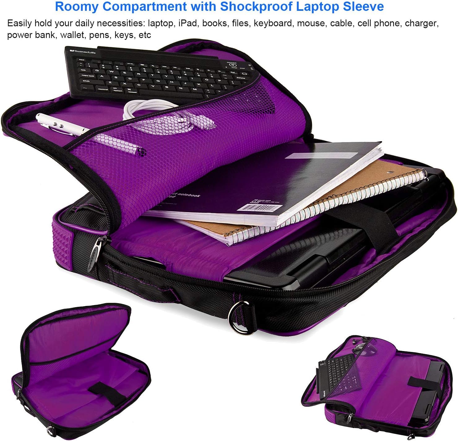 ROXIE Laptop Tablet Shoulder Bag Sleeve Case 10 11 11.6 12 Inch Protective Sleeve/Notebook Computer Pocket Case/Chromebook Case/Tablet Briefcase Carrying Bag for Men Women Work Travel Business Computer BagThis classic lightweight yet durable laptop and tablet shoulder bag is perfect for protecting and transporting your laptop or tablet, as well as providing convenient everyday storage. It can also be utilized as a general purpose bag, or even used as a fashion accessory. Deluxe, fashion design and top-quality materials combined with practicality and general usefulness make the shoulder bag an essential purchase.High Quality MaterialThis slim laptop shoulder bag is constructed of high quality Lightweight nylon material with adequate protection for day-to-day use.Large Capacity with Accessory Pockets- Main compartment with mesh pocket for holding laptop, notebook, MacBook, ultrabook, chromebook computer.- Front zipper compartment for storage of cellphone, pens, wallet, credit card, keys, etc.- Exterior headphone port / cable hole for easy connections.- Top loading zipper on the sleeve allows smooth gliding and convenient access to the laptop.Flexible Use & Hands-Free Carrying- A wide luggage belt is convenient for fixing the briefcase on your luggage.- Help you save more effort during the journey, travel, business trip, college, in the office, daily life.Multi-Purpose Laptop BagShoulder bag for work, laptop bag for college life, briefcase for business trip, messenger bag for men & women, etc. This multi-purpose laptop bag is perfect for work, business, travel, and weekender use. Package Includes:1 x 11.6-Inch Laptop/Tablet Shoulder Messenger Bag Sleeve Case