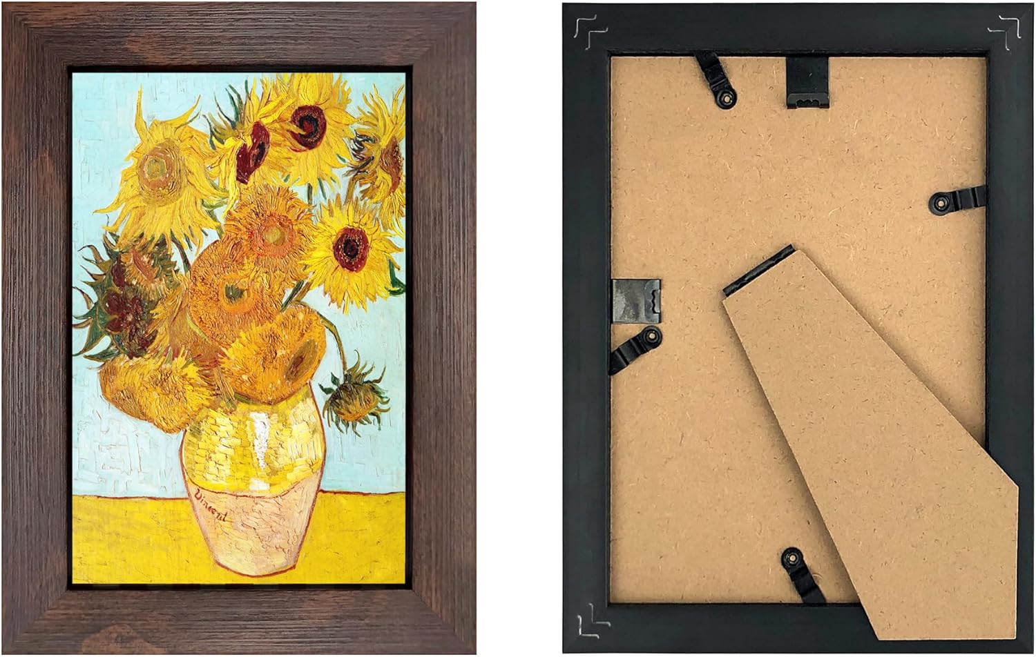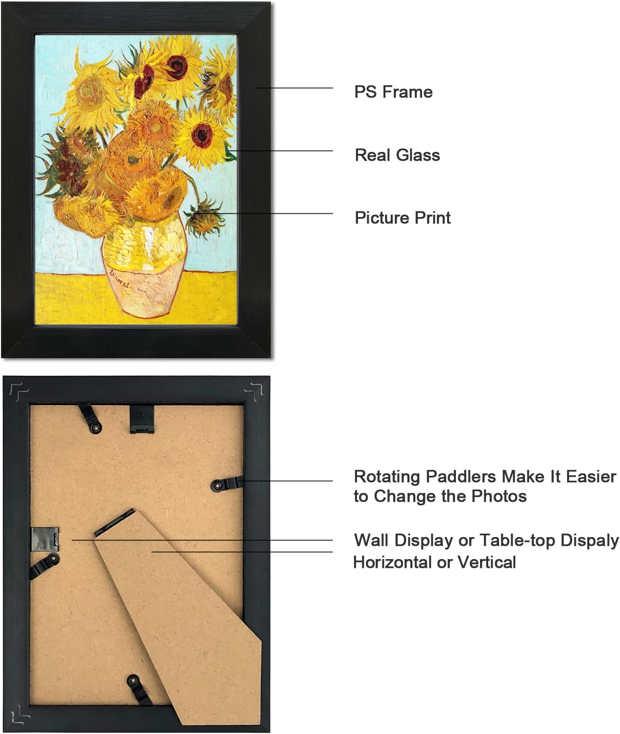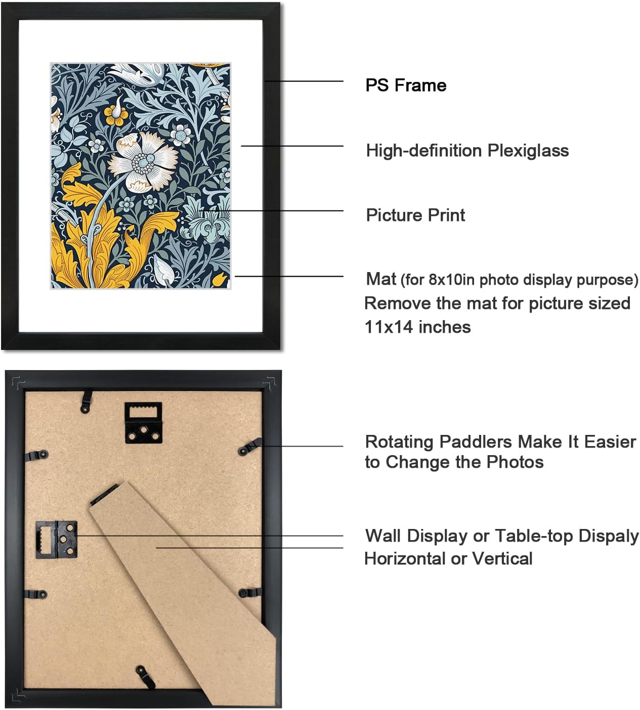 • WALL MOUNTING & TABLETOP DISPLAY: Spring type action to remove the backing easily. 2 ready-to-hang sturdy hangers and the bracket on the back to display your pictures or photos on the wall or the tabletop.