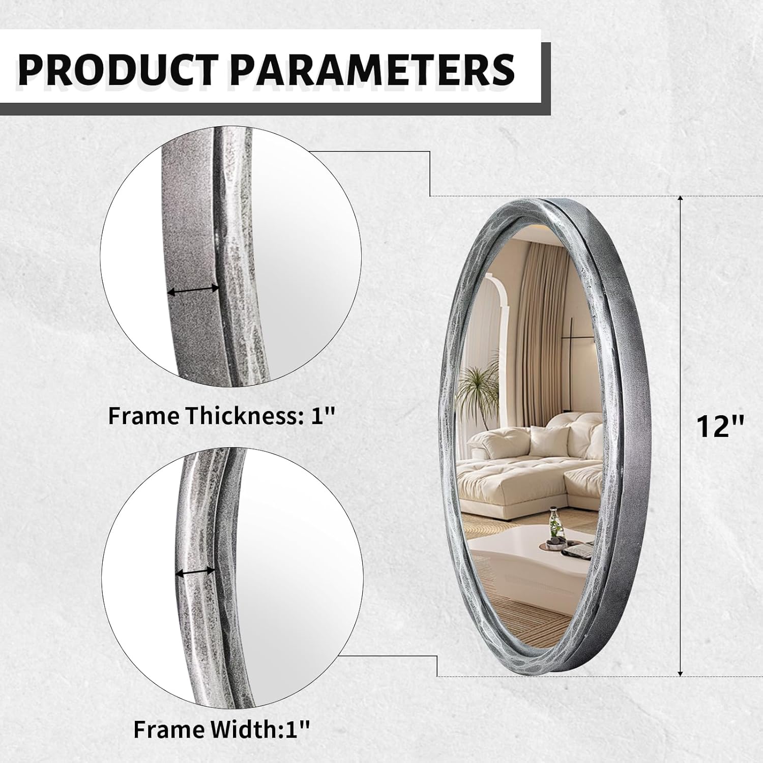 This is the round silver mirror your home has been looking for. So what are you waiting for?1. It boasts a streamlined circular silhouette, and it has a thick metal frame with a neutral finish to complement your surrounding decor. 2. Clean line with sleek black finish gives a elegant retro style, turning the dull wall alive and making the room look extra spacious and light.3. Compact frame & strong backboard endow the black bathroom mirror more stable & longer working life.4. No matter how small or dark, the decorative round mirror can transform any room into an airy and bright space.Our wall-mounted mirror offer a minimalist look and bring your walls to life.Dimensions: 12”L x 1”W x 12”HMaterial: Metal+MDF+MirrorFinish: Polished SilverShape: RoundWeight: 2.1 lbsMaintenance: Dust with a soft dry cloth.
