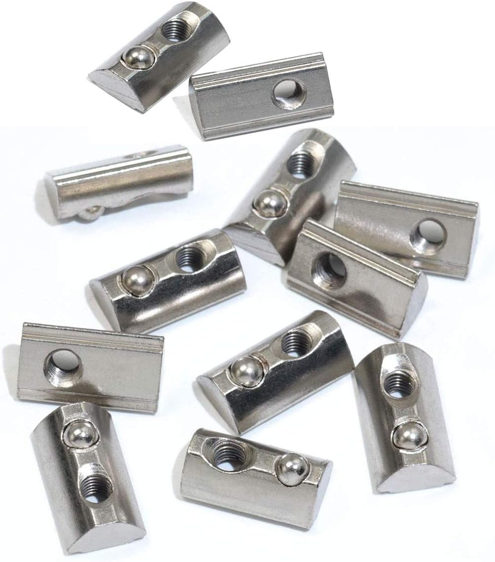 Specification: Color: Silver Shape: Roll Ball Elastic Nuts Material: Carbon Steel Thread Type: M3 Feature: 1.Made of high-quality carbon steel nickel-plated. 2.M3 Thread (screws not included). 3.Suitable for standard 20mm aluminum profile extrusion slot. Package Includes: 12 x 2020 series M3 T-Nuts