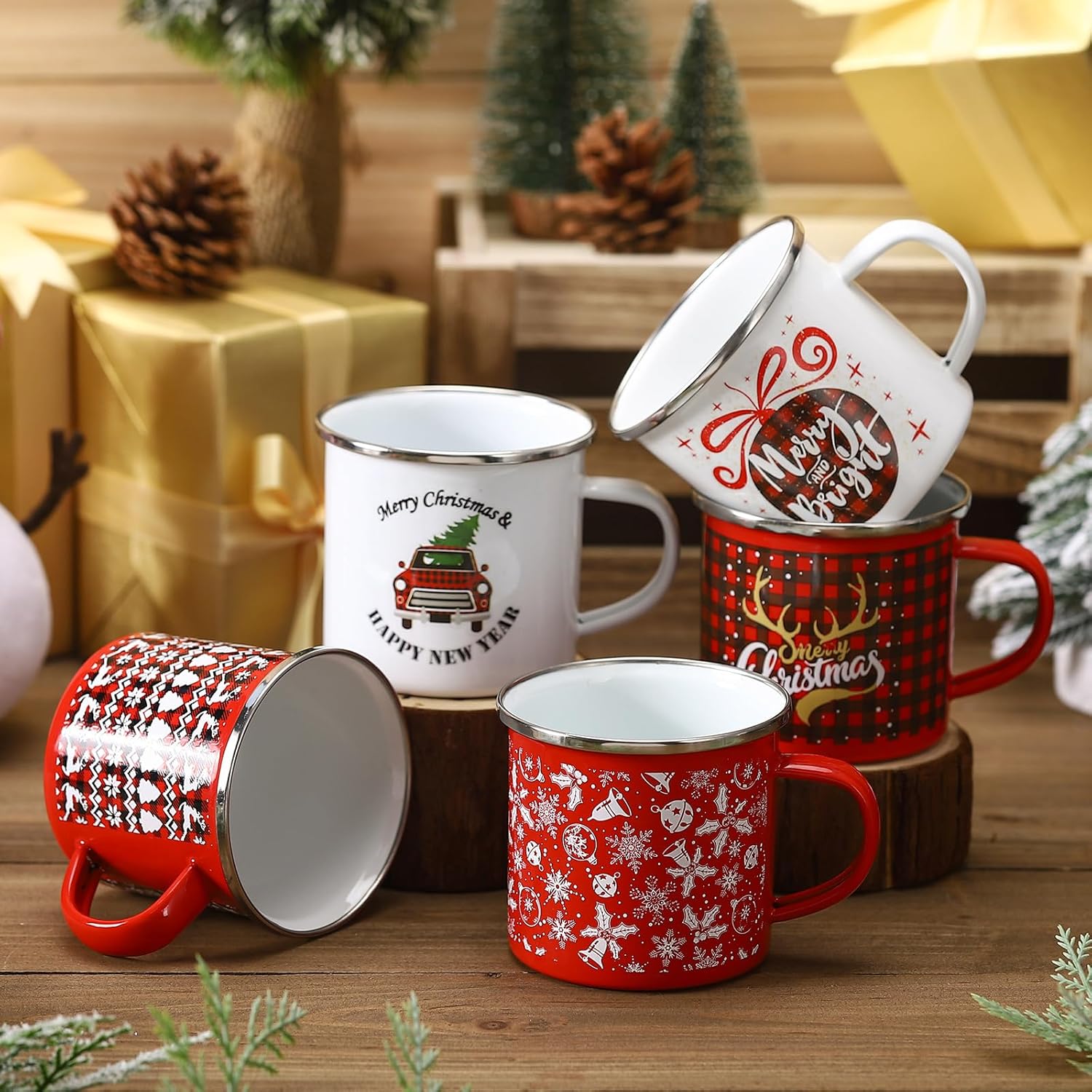Features: Charming Holiday Decor Accent: These red and white mugs add a festive touch to coffee bars, table settings, or gift baskets during Christmas and winter celebrations. Safe to Sip, Easy to Clean: Smooth enamel surface is odorless and easy to rinse. Wide mouth design makes each sip comfortable and reduces spills during use. Specifications: Material: enamel Color: red and white Size: 12 ounces Package includes: 12 x Christmas mugs Notes: Manual measurement, please allow slight errors on size. The color may exist a slight difference due to different screen displays