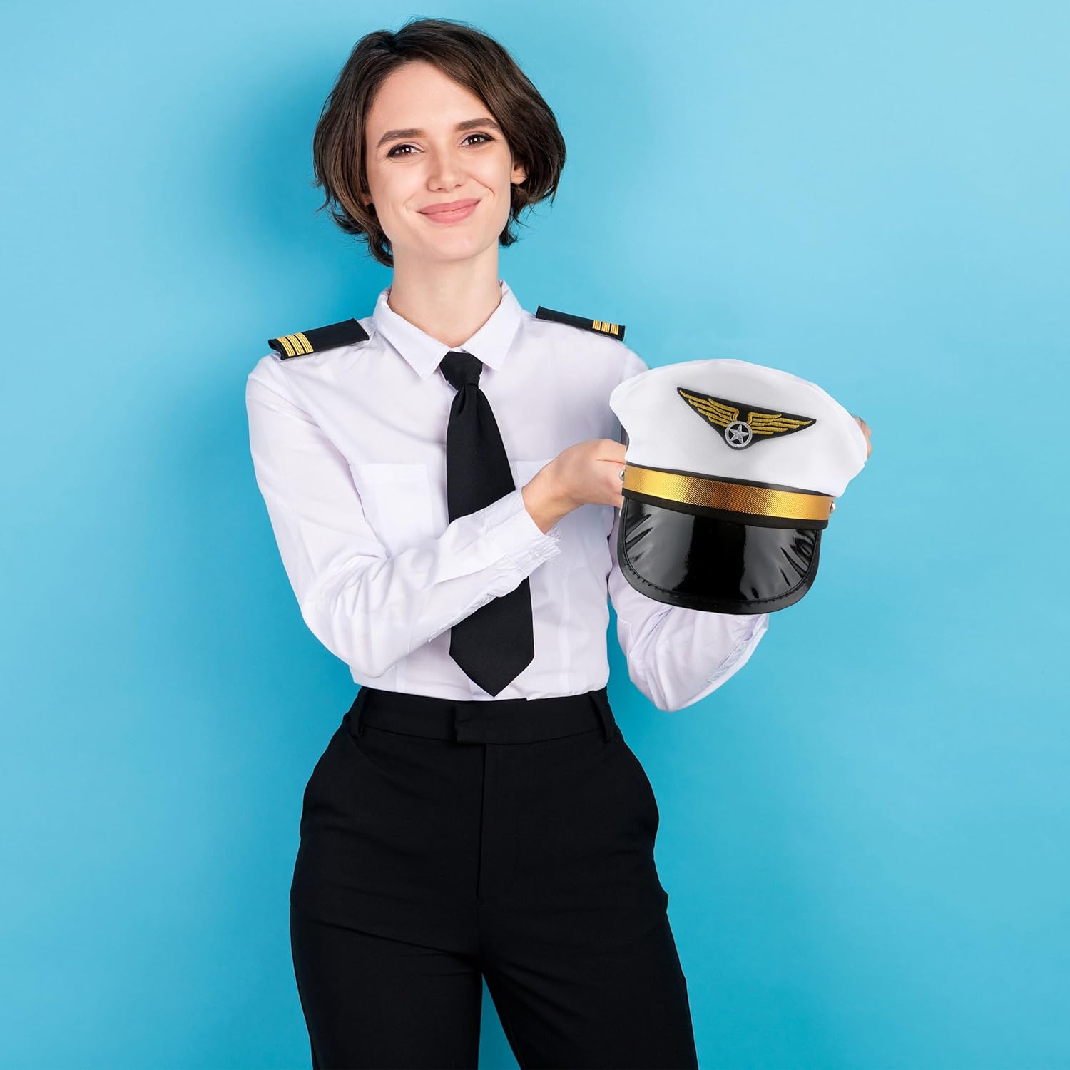 12 Pack Men Pilot Hats Airplane Captain Hat Adjustable Airline Pilot Hat for Women Halloween Cosplay Costume Accessories Wide application: the captain pilot hat is great for airline themed party, dress-up party, Halloween party, masquerade, birthday parties, photo-booths, stage performance, school plays and more, classic design captain hat makes you look cool, stylish and charming, bring fun to your party Specification: Material: polyester twill Color: black, blue Quantity: 12 pack Package include: 12 x Adult Pilot Hat