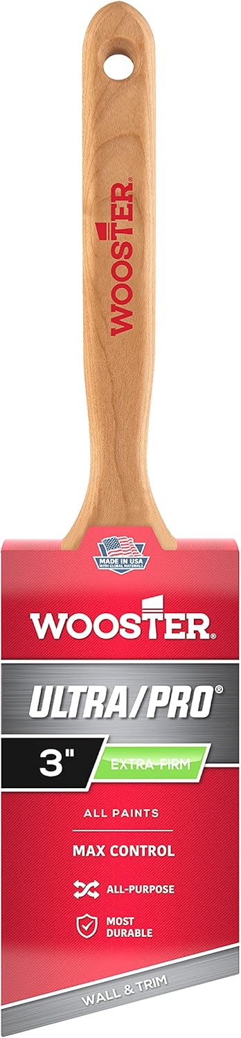 The Ultra/Pro Extra‐Firm are able to cut a sharp line even in hot or humid conditions. The extra‐firm is a perfect choice for all thick or fast‐drying paints and primers. It excels during exterior use. Made from 100% nylon and featuring an exclusive Wooster filament called NylonPlus, it paints rigidity, resists wears, and cleans much more easily than brushes that use polyester to achieve extra stiffness.
