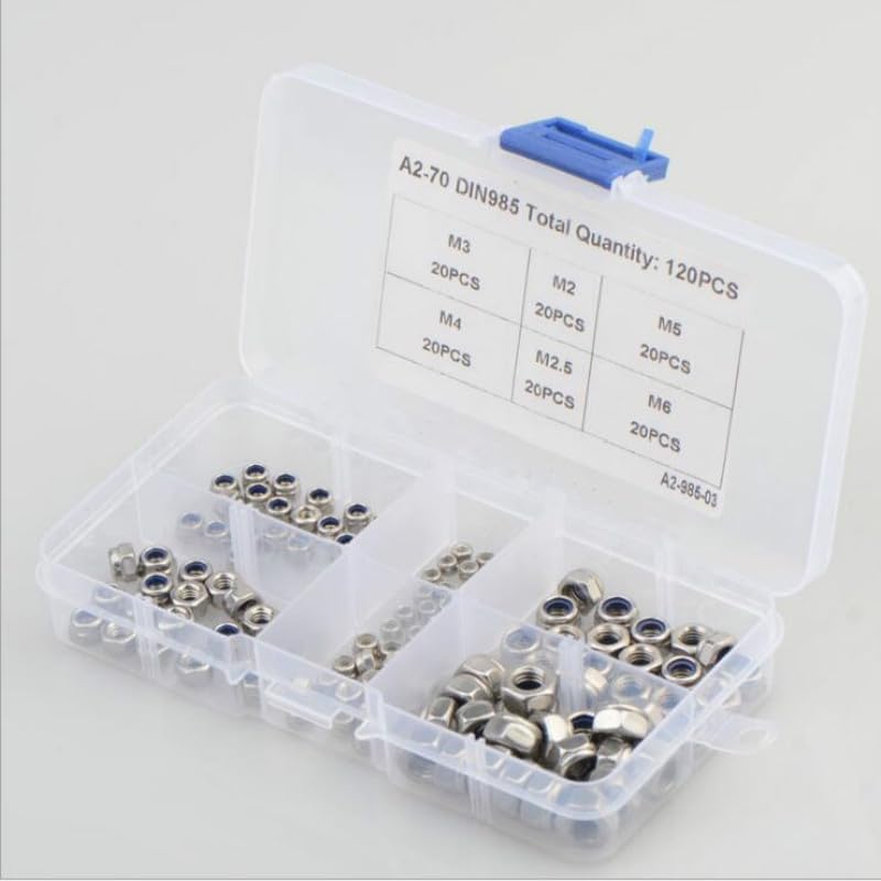 We use , ultra-high rigid transparent plastic boxes, which are different from other ordinary thin boxes.Box size: 13 * 6.5 * 2.3CMBox material: PP 120pcs M2 M2.5 M3 M4 M5 M6 foreign trade stainless steel 304 DIN985 nylon hex nutProduct net weight: 119.7gM2 20 pcsM2.5 20 pcsM3 20pcsM4 20pcsM5 20 pcsM6 20 pcsItem specifics:Material: Stainless SteelIs customized: YesType: Hexagon NutsDiy supplies: MetalworkingOrigin: Mainland ChinaCertification: CEModel number: LM5