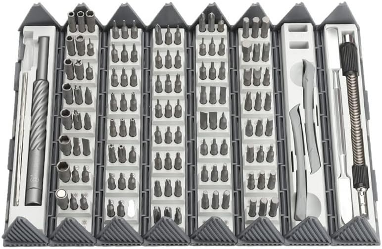 Description: Brand New And High Quality. Features: All Precision Bits Are Made Of CR-V Steel,It'S Hardness Can Reach Over HRC62°,Resist Abrasion. The Tip Is Sturdy,Durable And Not Easily Stripped,Ensure Long Time Use. Every Bit Is Engraved Part Number And Size For Fast Recognition. The Shell Adopts Body Feeling Paint Magnet Switch Design Waterproof,Compressive And Moisture-Proof. Ergonomic Handle Made Of Aluminum Alloy,Built-In Magnet On The Handle Head,It Will Actively Absorb The Drive Bits,Super Smooth Swivel Cap Allows You To Apply Constant Pressure While Rotating,And The Various Accessories In The Kit Make Your Repair Work Easier And More Efficient. This Screwdriver Set Has 120 Different Bits,Which Is Useful For Laptop,Cell Phone,Tablet,Macbook,Phone And So On. Specifications: Material:Aluminum Alloy+Steel Color:Gray Size:As Shown Package Include: 1Set X Screwdriver Kit