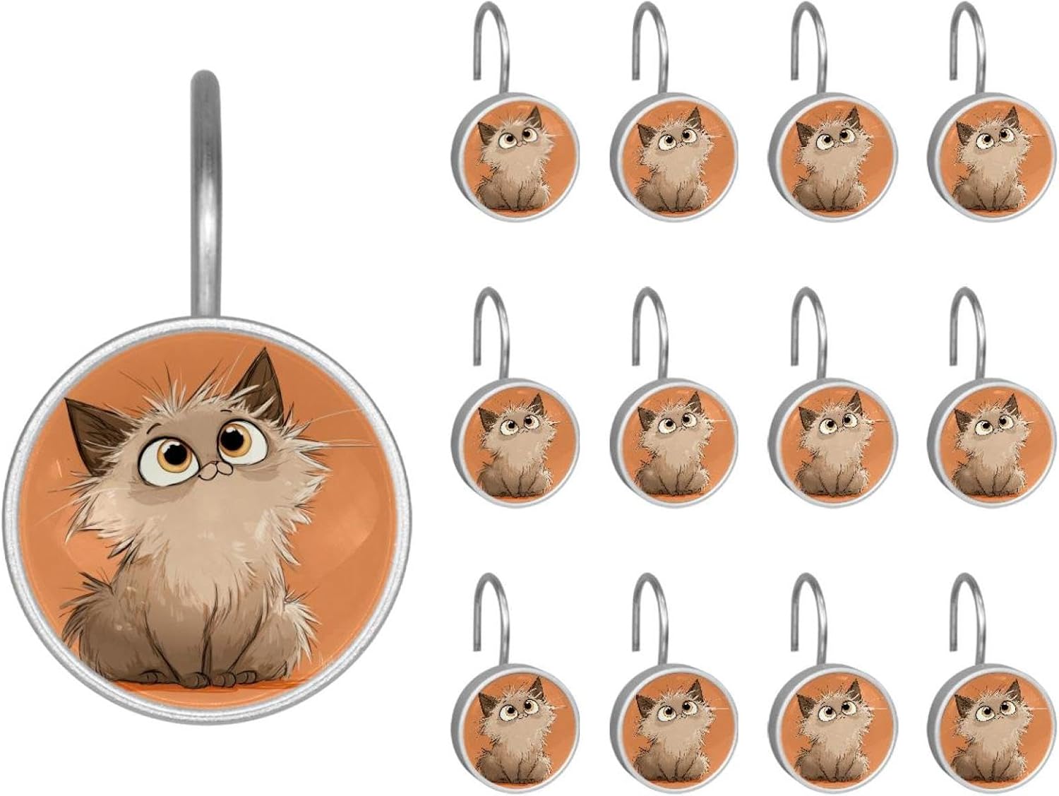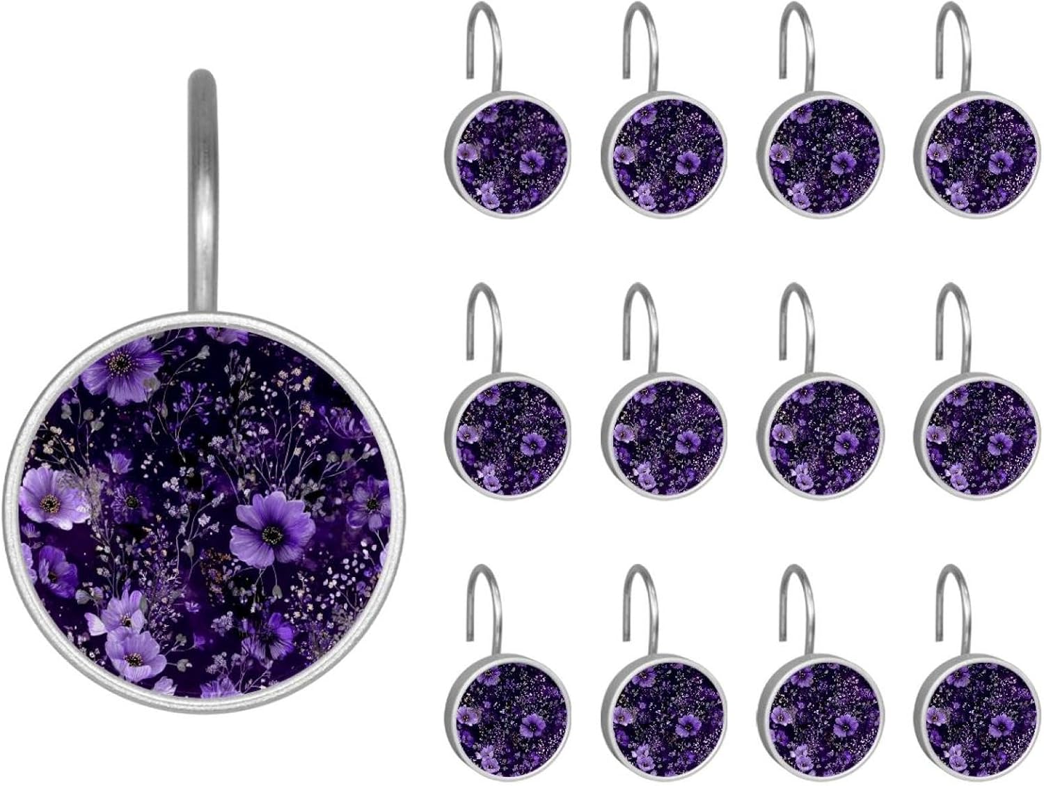 MATERIAL: glass, stainless steel. These shower curtain hooks can be decoration bathroom and will be long-lasting.12 pieces of shower curtain hooks, round crystal glass decoration, printed patterns, silver hooks to match various styles of bathroom shower curtains. SIZE: Crystal glass diameter of round shower curtain hook is 1.45x1.45in/ 3.7x3.7cm. The shower curtain hooks diameter is about 1.1in, 12 pieces shower curtain hooks are suitable for rod of 8-28mm(0.3"-1.1"). RUST RESISTANT:Shower hooks are made of stainless steel and crystal glass, which is durable, rust-proof and corrosion-resistant, it will not rust suitable for wet bathroom environment. EASY TO INSTALL:Hand the shower curtain hooks hold securely on straight or curved shower curtain rods,slid easily and smoothly. Easy to install and decorate your bathroom. BEAUTIFUL AND ELEGANT:Beautiful Love hook add charming scenery for your bathroom, baby room, bedroom, living room, and the gorgeous style is easy to match with any kinds of bathroom shower curtain. EASY GLIDE: Open and close your shower curtain quickly and easily with the Shower Hooks, easily glides on shower curtain rods and tension rods. No snagging; no effort; no hassle PACKAGE: 12 shower curtain hooks in a pack.The bathroom curtain hook has a smooth appearance and can be hung on the pole to pull it at will. Special price 12 sets to meet your needs.