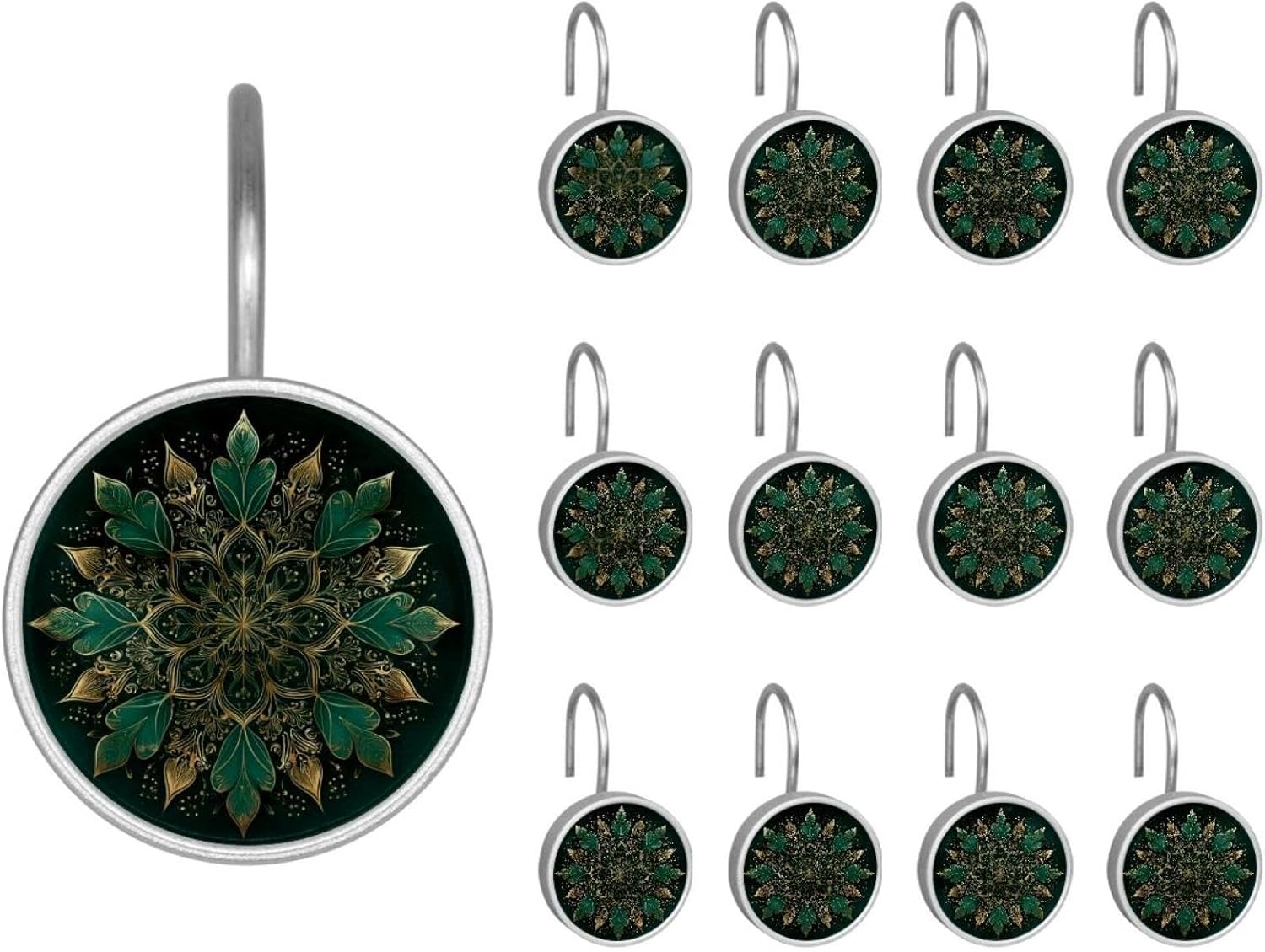 MATERIAL: glass, stainless steel. These shower curtain hooks can be decoration bathroom and will be long-lasting.12 pieces of shower curtain hooks, round crystal glass decoration, printed patterns, silver hooks to match various styles of bathroom shower curtains. SIZE: Crystal glass diameter of round shower curtain hook is 1.45x1.45in/ 3.7x3.7cm. The shower curtain hooks diameter is about 1.1in, 12 pieces shower curtain hooks are suitable for rod of 8-28mm(0.3"-1.1"). RUST RESISTANT:Shower hooks are made of stainless steel and crystal glass, which is durable, rust-proof and corrosion-resistant, it will not rust suitable for wet bathroom environment. EASY TO INSTALL:Hand the shower curtain hooks hold securely on straight or curved shower curtain rods,slid easily and smoothly. Easy to install and decorate your bathroom. BEAUTIFUL AND ELEGANT:Beautiful Love hook add charming scenery for your bathroom, baby room, bedroom, living room, and the gorgeous style is easy to match with any kinds of bathroom shower curtain. EASY GLIDE: Open and close your shower curtain quickly and easily with the Shower Hooks, easily glides on shower curtain rods and tension rods. No snagging; no effort; no hassle PACKAGE: 12 shower curtain hooks in a pack.The bathroom curtain hook has a smooth appearance and can be hung on the pole to pull it at will. Special price 12 sets to meet your needs.