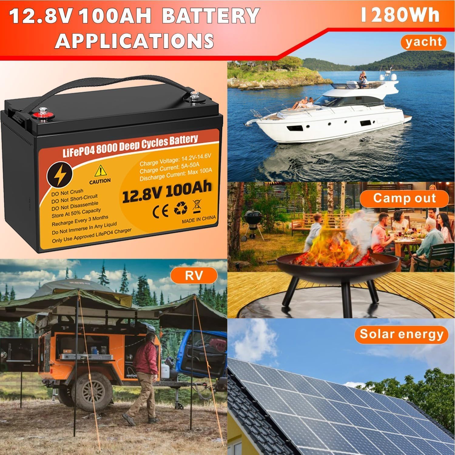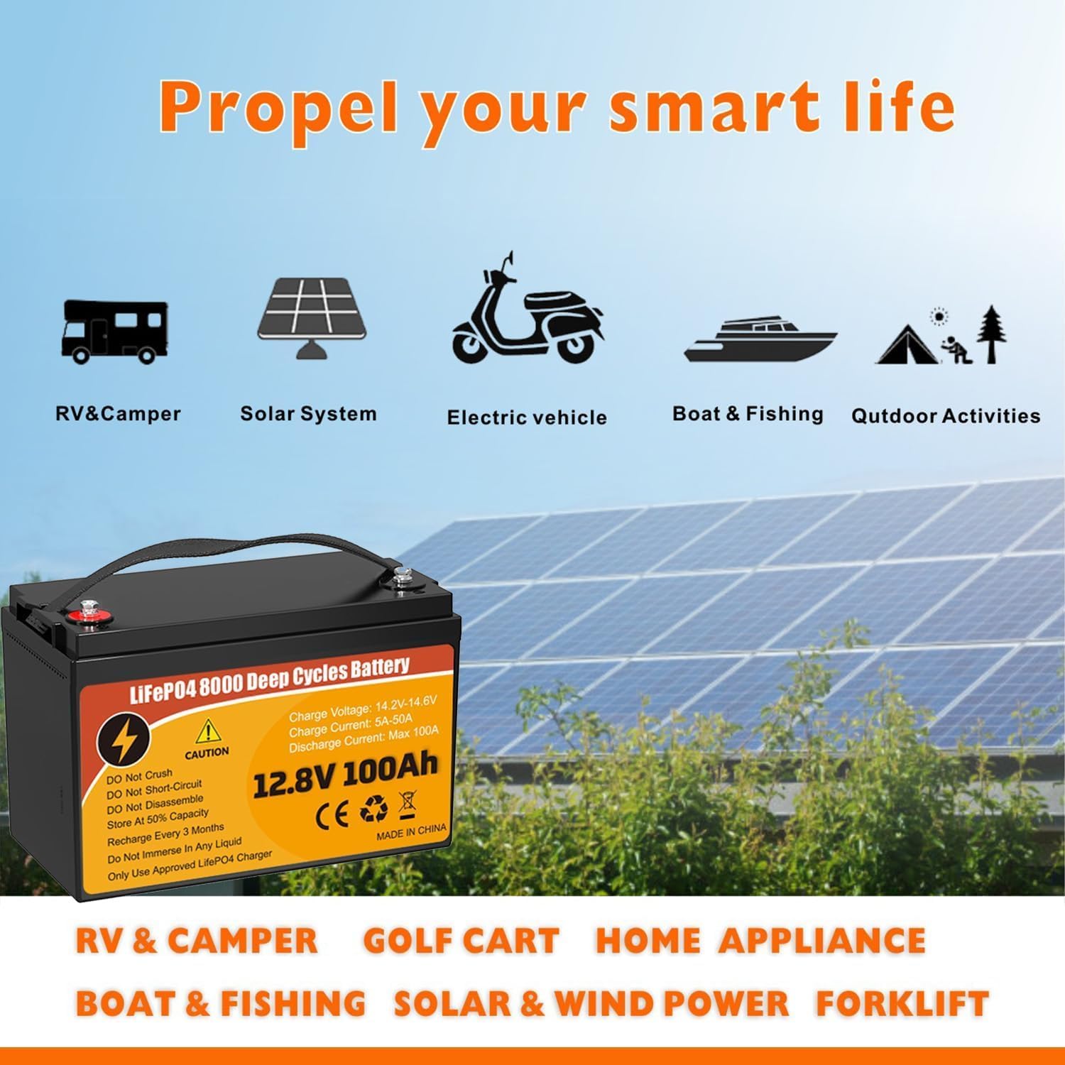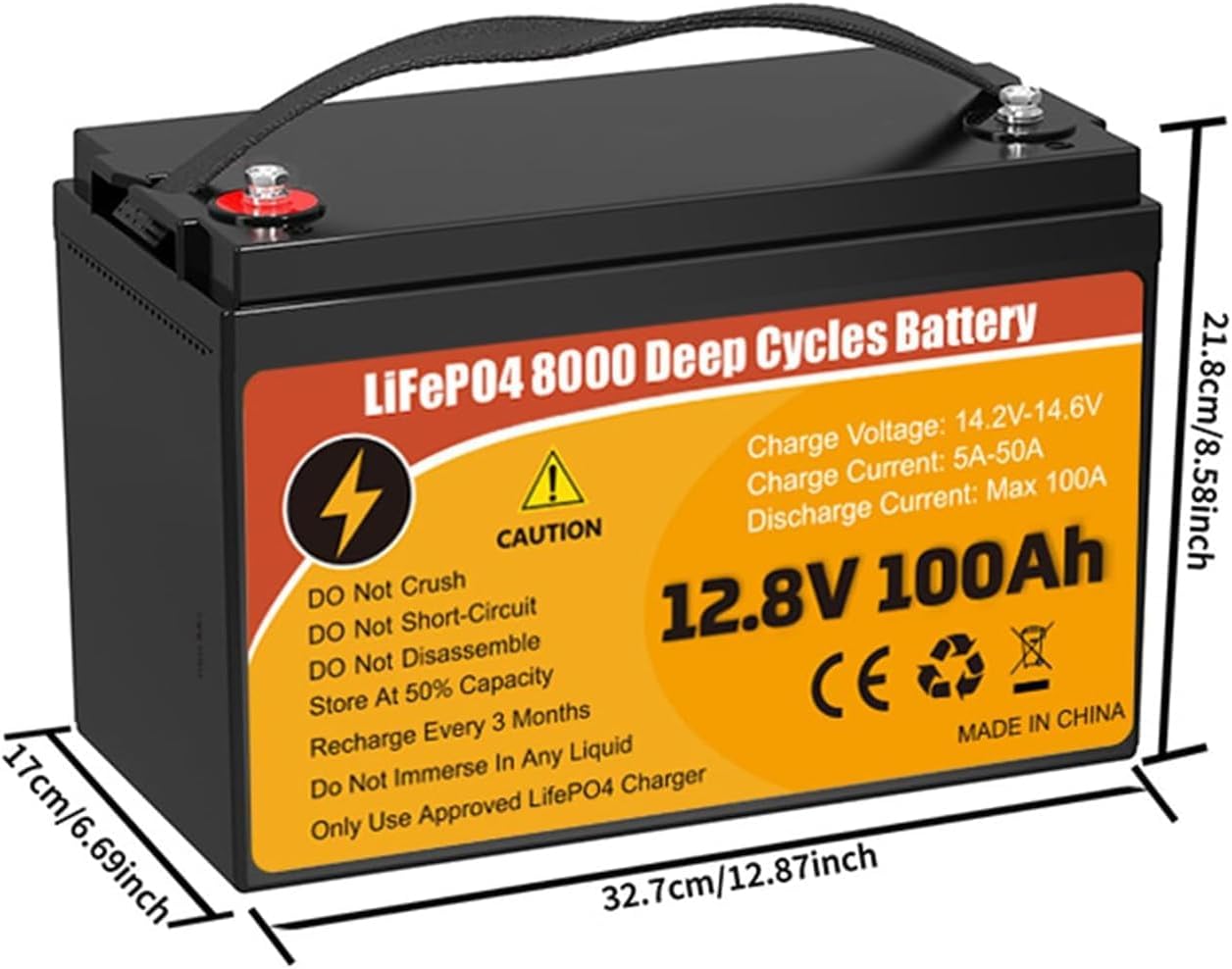 | Included Components | 1* LiFePO4 Lithium Battery, 1* Manual, 2 * Insulating Caps, 2 * M8- 5/8" (16mm) Terminal Bolts |